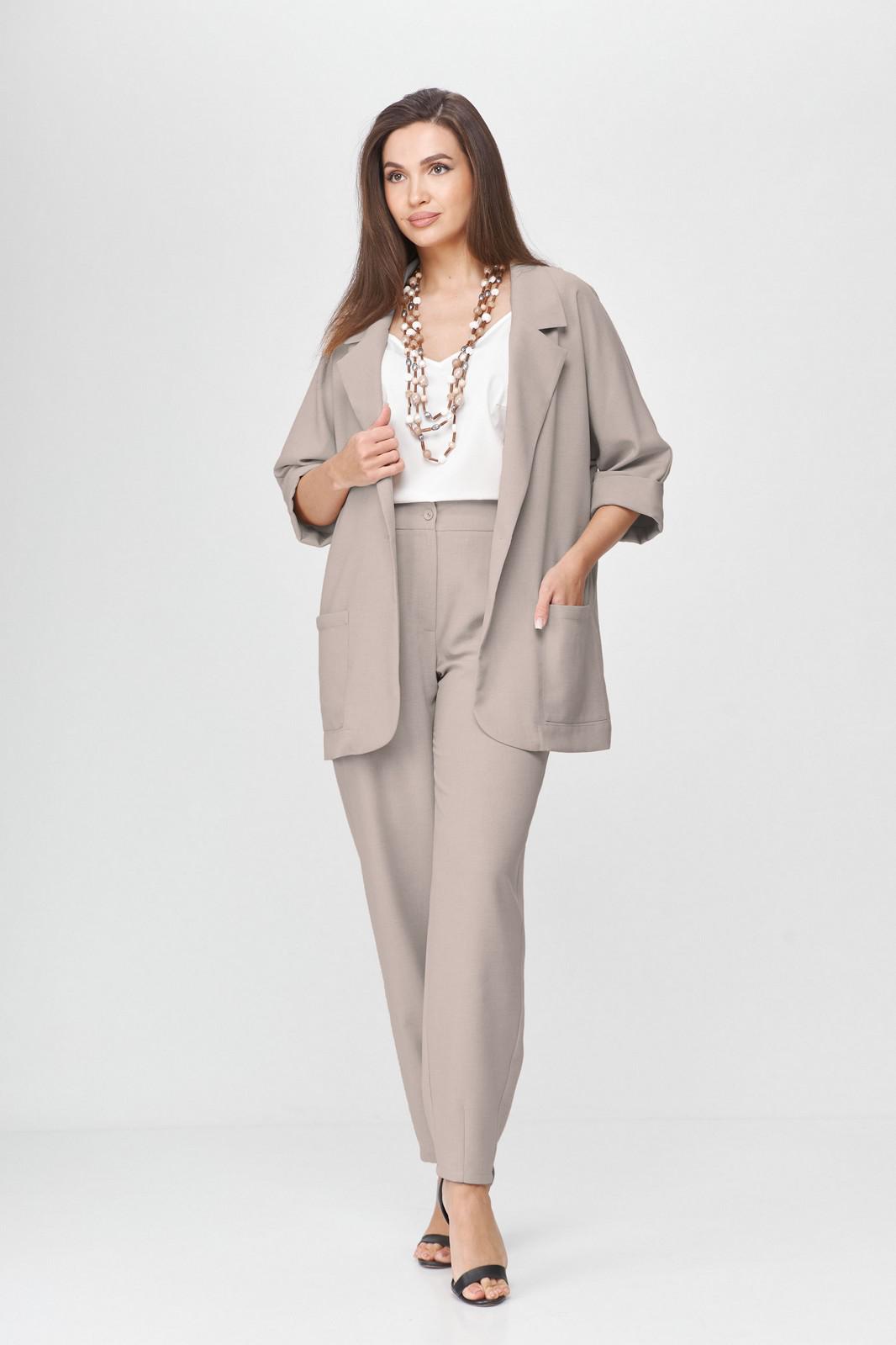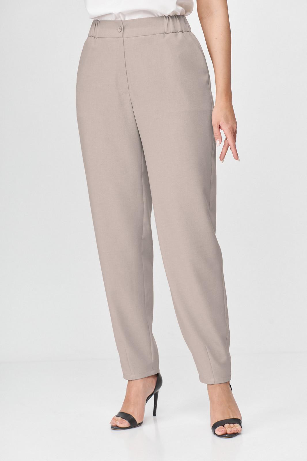Брюки женские, свободного кроя. Слегка заужены к низу, покроя оверсайз. Прорезные карманы в боковых швах. Притачной пояс с эластичной тесьмой. По низу брюк декоративные вытачки придающие зауженный силуэт. Застежка на 2 пуговицы и молнию с цельнокроеным гульфиком. Так же можно приобрести жакет артикул 6001 Abbi или комплектом арикул 5004 Abbi.
