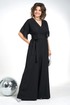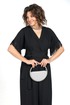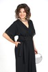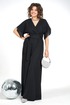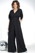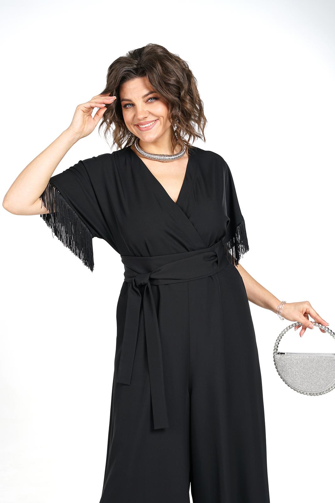 Комбинезон женский отрезной по линии талии, со спущенной линией плеча понизу с отделочной тесьмой «бахрама», с притачным поясом и съёмным завязывающимся поясом по линии талии. С застёжкой по среднему шву спинки на потайную молнию. Лиф переда на запах. Лиф спинки с талевыми выточками. Брюки расширенного силуэта, передние части с косыми боковыми карманами, задние с талевыми выточками.