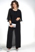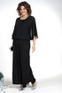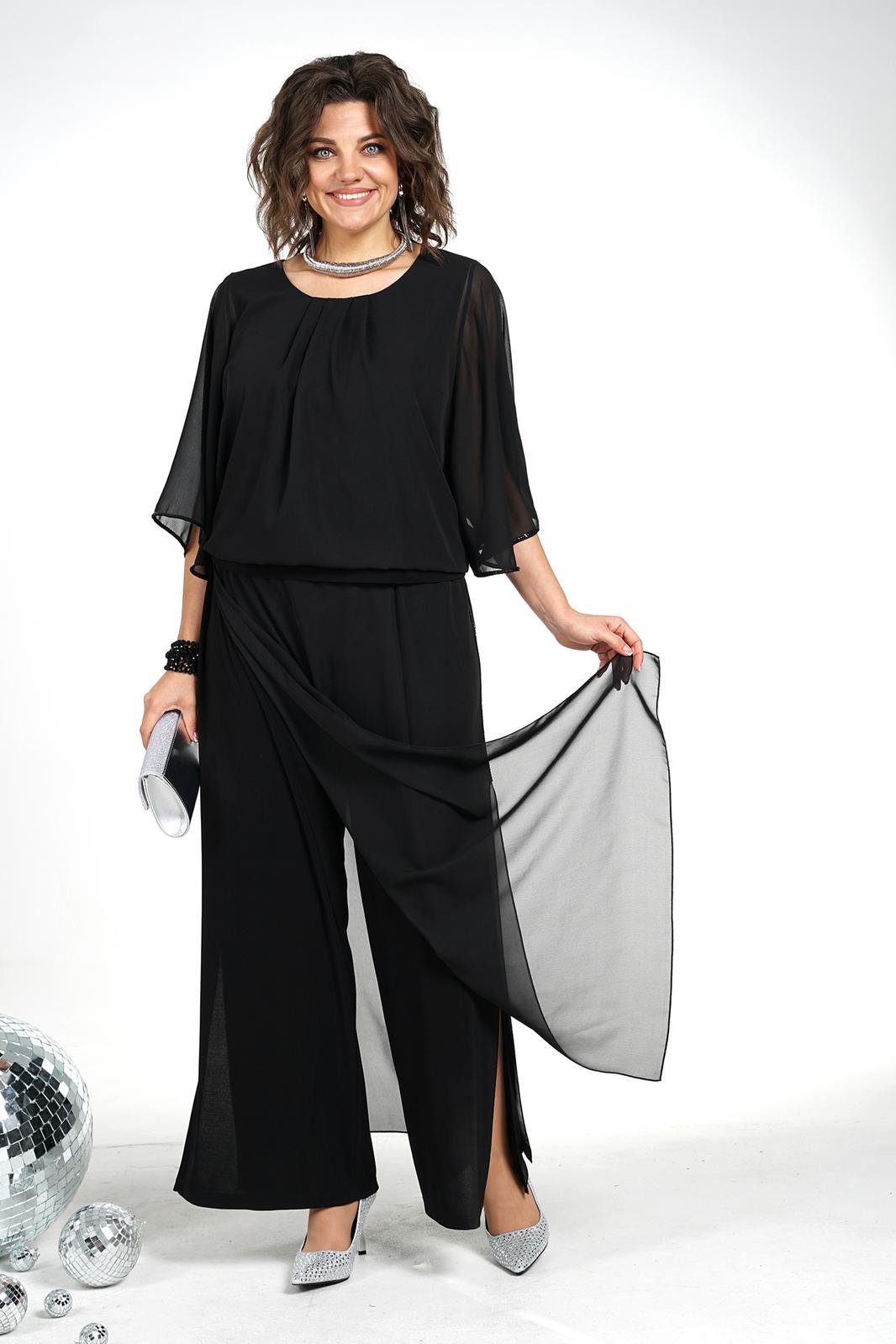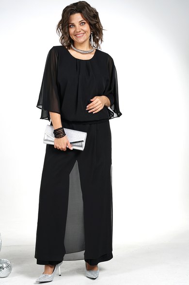 Юбка-брюки прямого силуэта, с притачным поясом на резинке: юбка по переду с мягкой складкой смещённой влево, по левому боковому с разрезом, декорированный отделочной тесьмой, правый боковой отлетной, брюки по боковым швам с разрезами (выполнены из трик. полотна).
