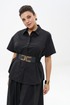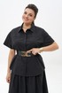 Блузка прямого свободного силуэта, с застёжкой на петли, пуговицы, со спущенной линией плеча, с фигурной линией низа. В дополнение ремень.