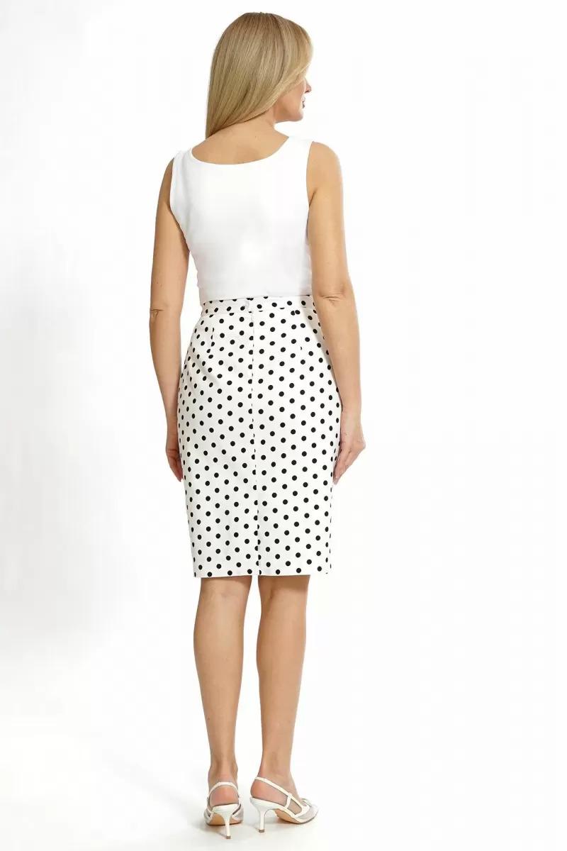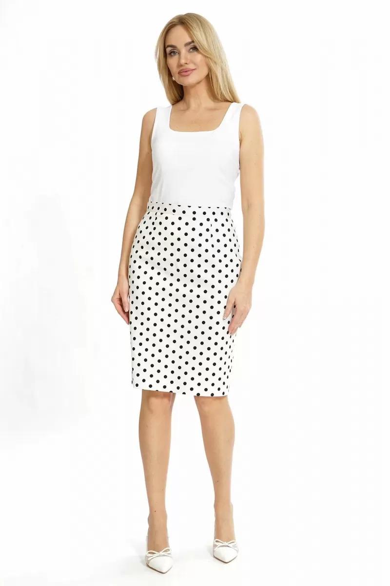Юбка полуприлегающего силуэта книзу чуть заужена, на подкладке, на притачном поясе, с застёжкой на потайную молнию в среднем шве заднего полотнища и петлю, пуговицу по поясу.