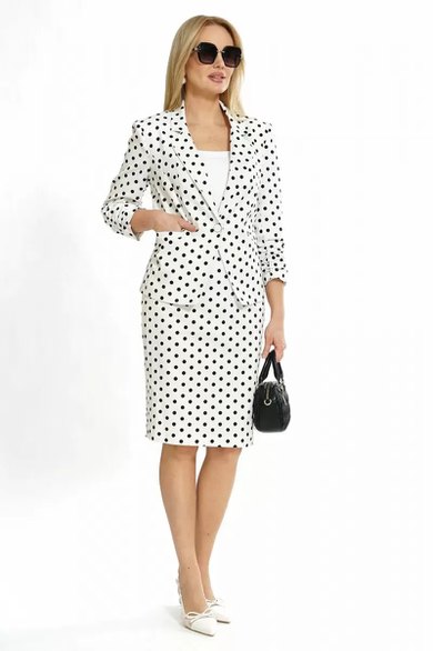 - Тип ткани: Жакет, Юбка платьево-костюмного ассортимента 97%хлопок, 3%спандекс; Топ трик. полотно «вискоза» 66%вискоза, 30%нейлон, 4%спандекс