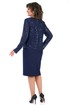 Платье отрезное по линии талии, верхняя часть отлетная, на подкладке, с разрезом по среднему шву спинки и застёжкой на навесную петлю, пуговицу.