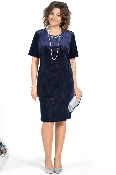Платье полуприлегающего силуэта, с застёжкой на потайную молнию в среднем шве спинки. Перед с нагрудными и талевыми выточками. Спинка с талевыми выточками, понизу щлица. Рукава втачные, одношовные, короткие.