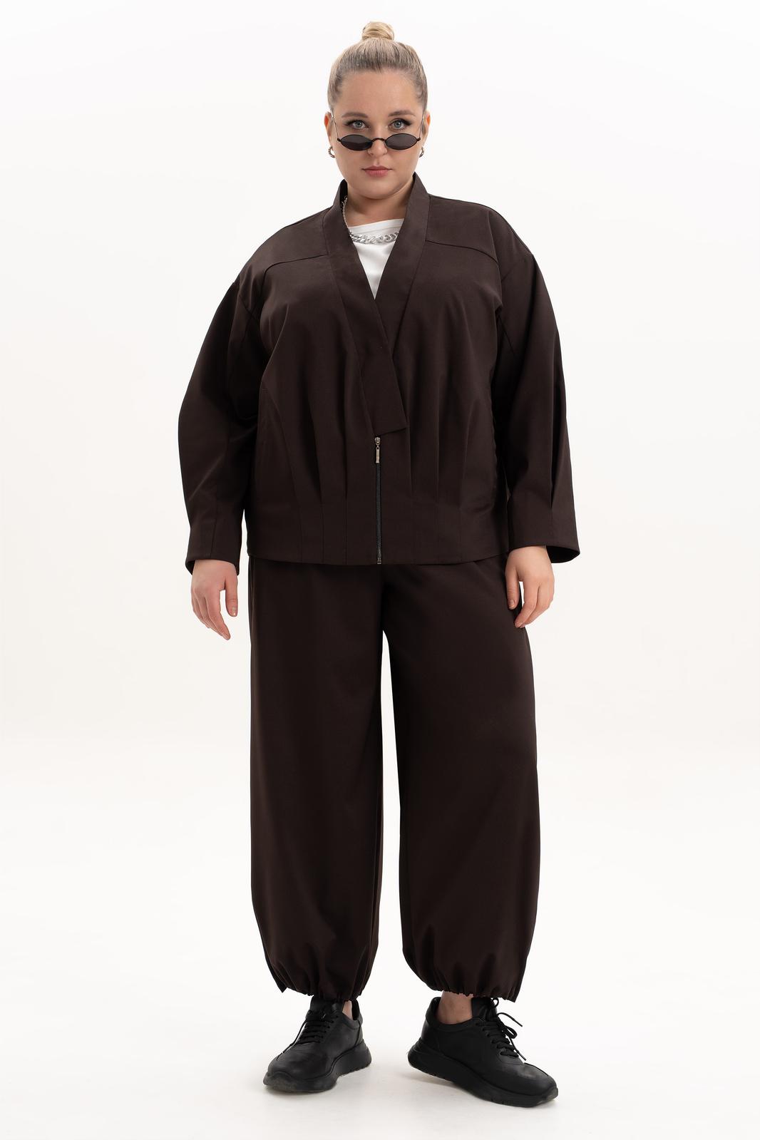 Представляем трех предметный комплект Алладин. Лёгкий жакет-курточного типа на подкладке, майка и брюки-алладины подходит для девушек любого возраста. Костюмная ткань с хорошим стрейч-эффектом добавит комфорта при носке изделия. Жакет свободного силуэта на подкладке с воротником-стойка. Спинка без среднего шва c отрезной кокеткой, где заложены небольшие складки. По переду жакета есть застроченные складки от низа, карман в листочку, застёжка на молнию и потайной магнит. Рукав втачной, длинный, по низу есть также застроченные складки. Этот демисезонный жакет станет отличным вариантом для весенних и осенних дней, когда хочется выглядеть привлекательно и чувствовать себя комфортно и модно. Майка из вискозы с круглым вырезом горловины, спущенным плечом, коротким рукавом. Удобные и комфортные брюки-алладины-это универсальная модель для повседневной носки, отдыха, прогулок. Этот комплект- незаменимая в гардеробе вещь, которая подчеркнёт всю утончённость женской натуры и позволит всегда чувствовать себя комфортно. Брюки идут с карманами в боковых швах. Пояс в области задней части брюк дополнен эластичной тесьмой, по низу брюк есть фиксаторы и эластичный шнур для регулировки ширины. Свободный широкий силуэт ,мягкая посадка и комфортная резинка на талии обеспечит удобство и свободу движений. Элегантная повседневная модель для города. Замечательный комплект в Ваш гардероб!
