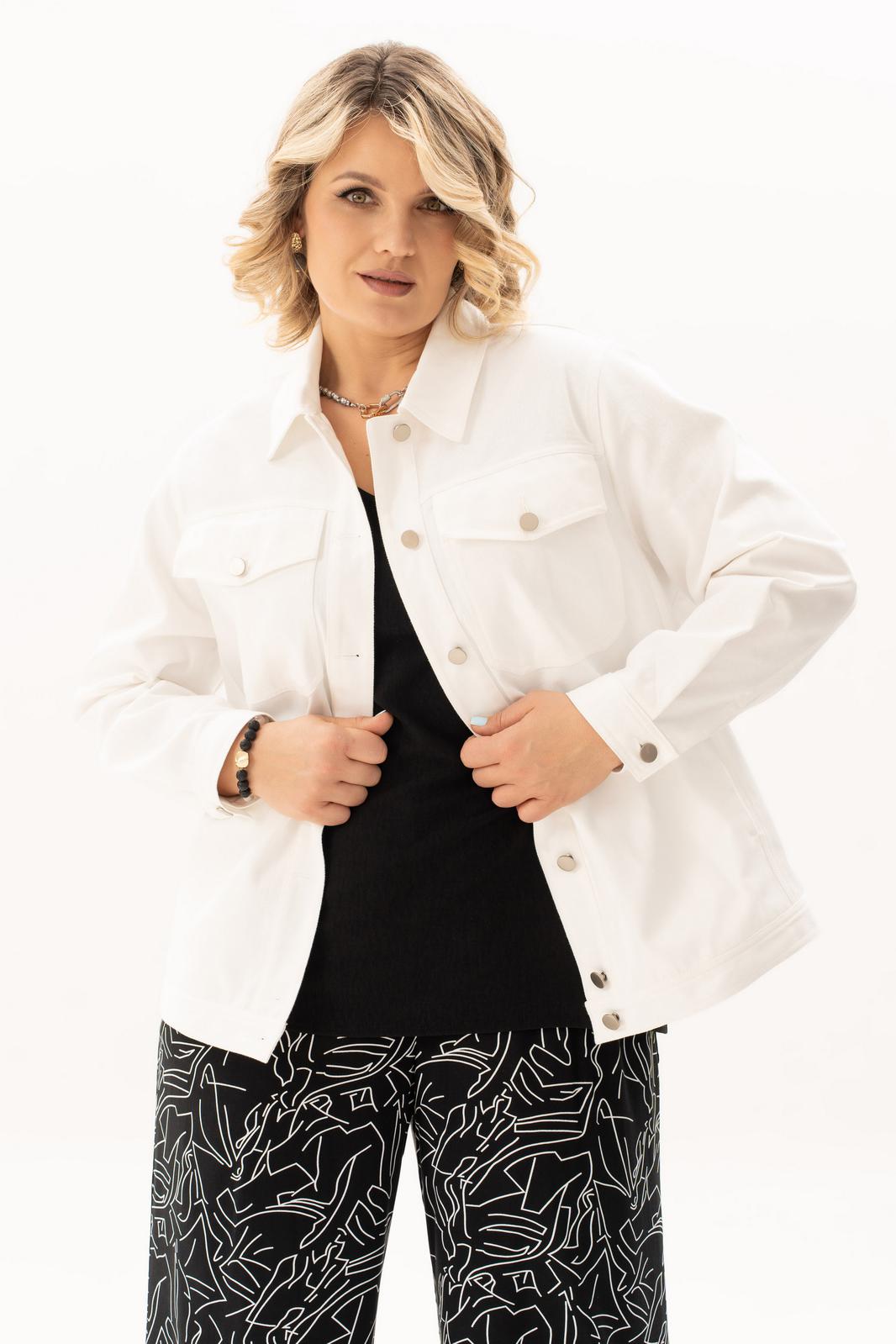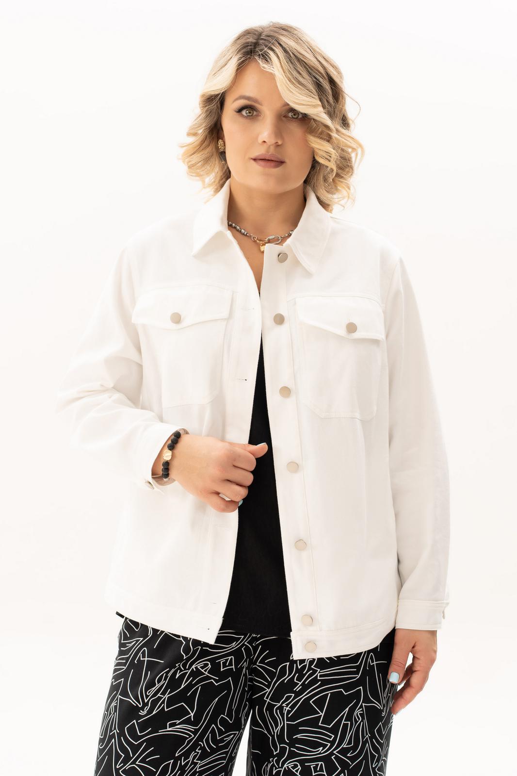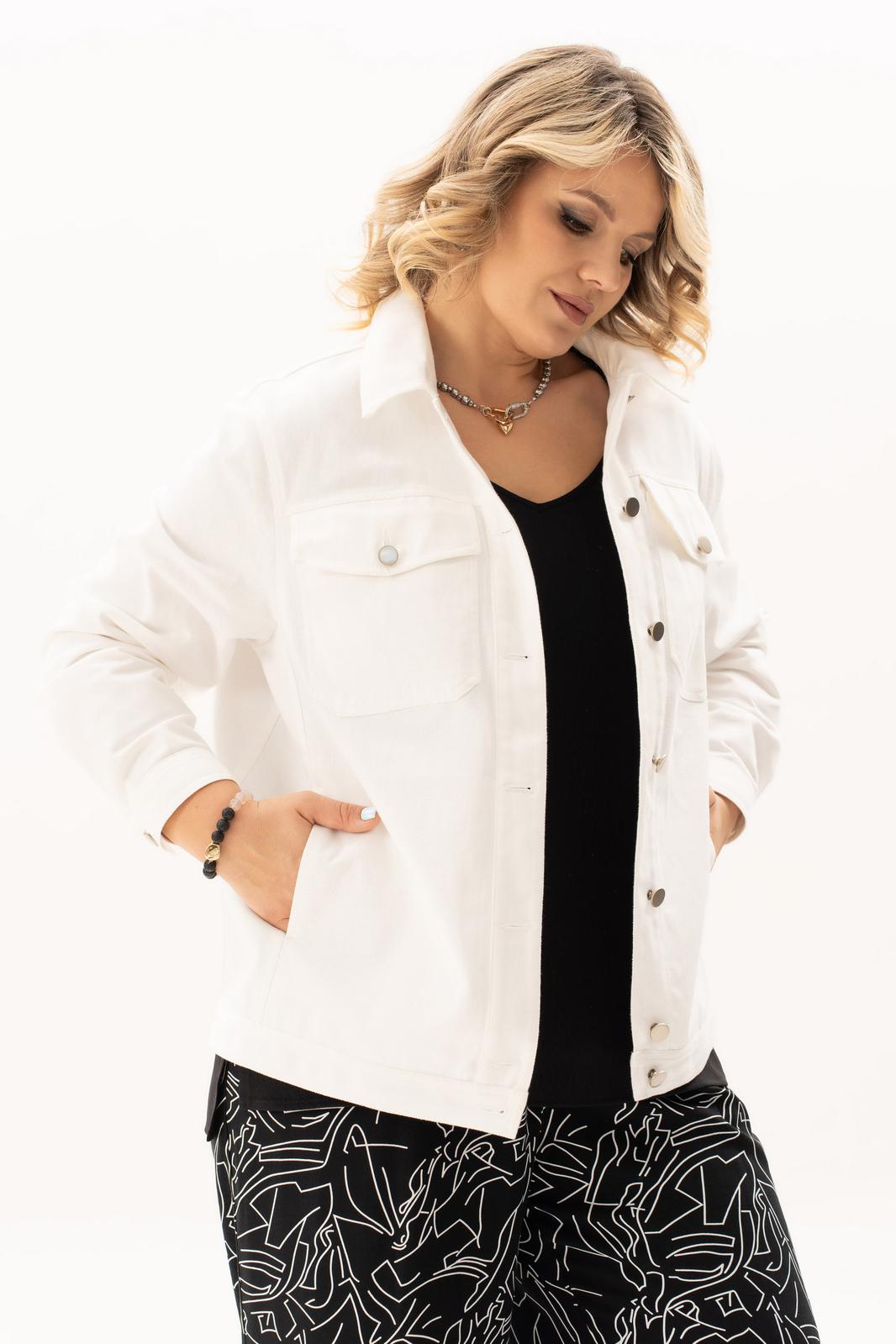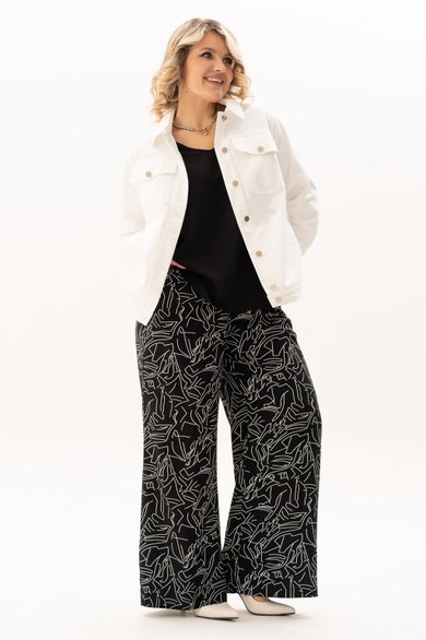 Стильный, современный, трендовый комплект с брюками для повседневной носки, торжественного мероприятия, в офис, школу или на прогулку. Приобретая один комплект, Вы покупаете несколько образов, каждая единица которого универсальна, поэтому может сочетаться со многими вещами из Вашего гардероба. Стильный вариант для красивого женского образа – сочетание белого джинсового жакета с брюками прямого кроя палацо из принтованной ткани и контрастной майкой. Жакет-куртка прямого кроя с рельефными швами и кокетками по переду и спинке, накладные карманы с клапанами и декоративные металлизированные пуговицы - узнаваемые нотки вневременной джинсовой мелодии. Жакет просто необходим при создании как романтического, так и спортивного образа. Майка с рукавом «крылышко», горловина углубленная V-образной формы. Брюки с боковыми карманами и поясом частично на резинке. Не упустите возможность приобрести брючный комплект с большим выбором размеров и ощутить комфорт в носке качественной и стильной одежды!