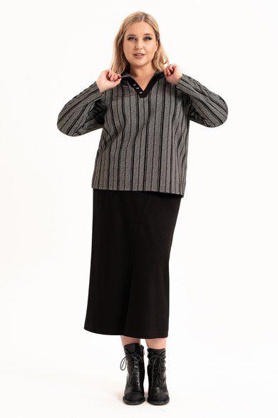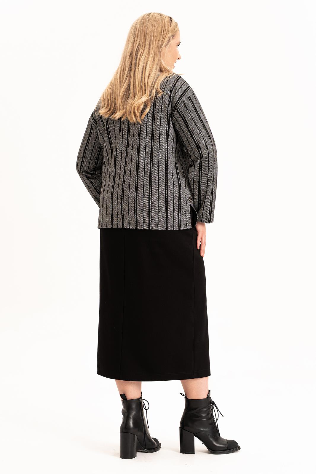 Стильный женский трикотажный костюм с юбкой станет настоящей находкой для каждой современной модницы. Удобный и практичный женский костюм оверсайз прекрасно подходит для любого типа фигуры, помогая выгодно скрыть недостатки и подчеркнуть достоинства. Приталенный силуэт трикотажной юбки с высокой посадкой, а также свободный крой свитшота сделает образ лаконичным, поможет всегда оставаться в тренде. Неповторимый стиль и удивительный комфорт умело сочетаются в этом женском костюме с юбкой. Женский костюм отлично подходит для повседневной носки, а также для более формальных ситуаций. Этот костюм идеально подходит как для офисной среды, так и для обеденного свидания или других повседневных мероприятий. Вы сможете легко создать разнообразные образы, изменяя аксессуары и обувь. В нем каждая сможет чувствовать себя комфортно. Удобный крой позволит не сковывать движения, при этом полноценно облегая силуэт женской фигуры. Костюм выполнен с учетом последних модных тенденций, что обеспечивает его стильный дизайн. Высококачественный трикотажный материал »лакоста», используемый при создании, придает костюму особую мягкость и удобство во время носки. Юбка с разрезом по цетру переднего полотнища и боковыми карманами добавляет нотку женственности и элегантности к образу. Горловина свитшота V-образная с обработанными планками и воротником, с боковыми разрезами и пришивным декором. Свитшот оверсайз отличается не только свободным кроем, но и имеет спущенную линию рукава, выгодно скрывая мельчайшие недостатки женской фигуры.