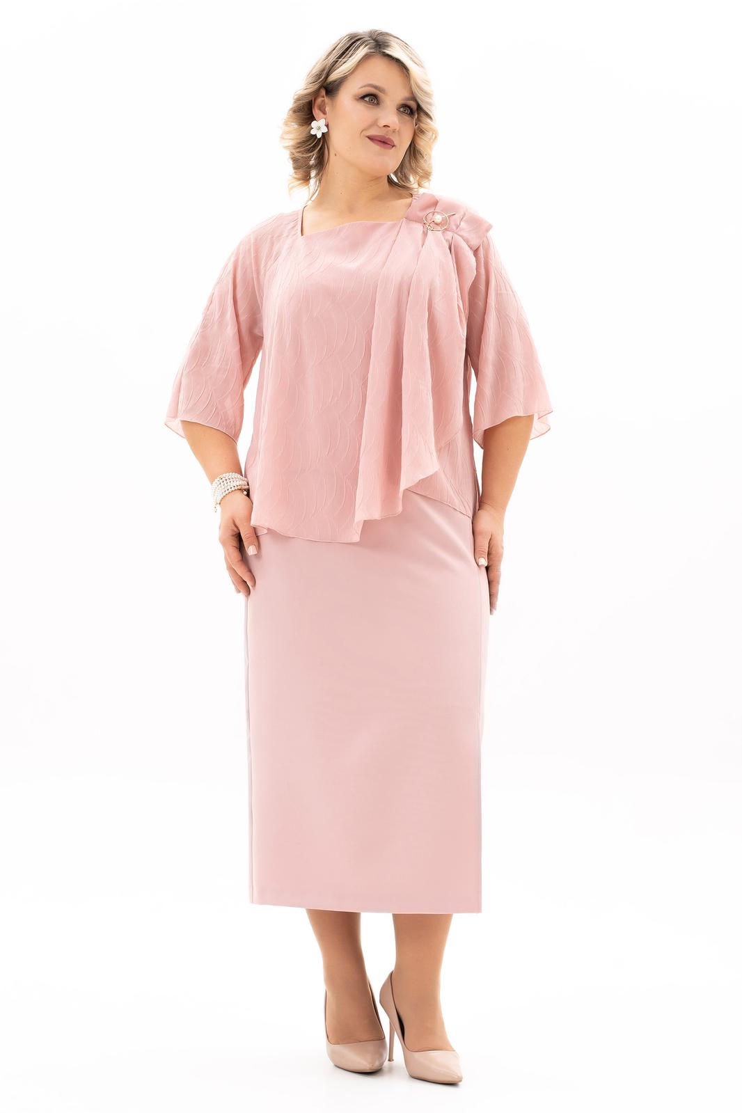 В мире моды женский костюм, состоящий из юбки и блузы, занимает особое место, объединяя элегантность, комфорт и практичность. Наш костюм, выполненный из высококачественной ткани c стрейч-эфектом. На полочки блузы есть нагрудные выточки с проймы, фигурный вырез горловины. Верхняя часть переда блузы декорирована мягкими складками и съёмной брошью, в боковых швах разрезы. Спинка без среднего шва. Модель блузы имеет и втачной рукав и реглан, длиной 3/4. Юбка демонстрирует утончённый дизайн с небольшим разрезом, который добавляет нотку игривости и женственности. Разрез не только делает образ более динамичным , но и придаёт ему определённую изюминку, позволяя Вам чувствовать себя уверенно и раскрепощено . Удобная и комфортная юбка на подкладке, слегка заужена к низу с застёжкой сзади на молнию и пуговицу. По поясу в области боковых швов есть эластичная тесьма, которая создаёт удобную посадку юбки на талии. Отличный вариант для офиса и вечернего гардероба, а также и просто для повседневного применения. Грация, изящество, утончённые декоративные элементы делают этот костюм уникальным. В этом костюме Вы будете неотразимы как в повседневной жизни, так и на любом торжестве.