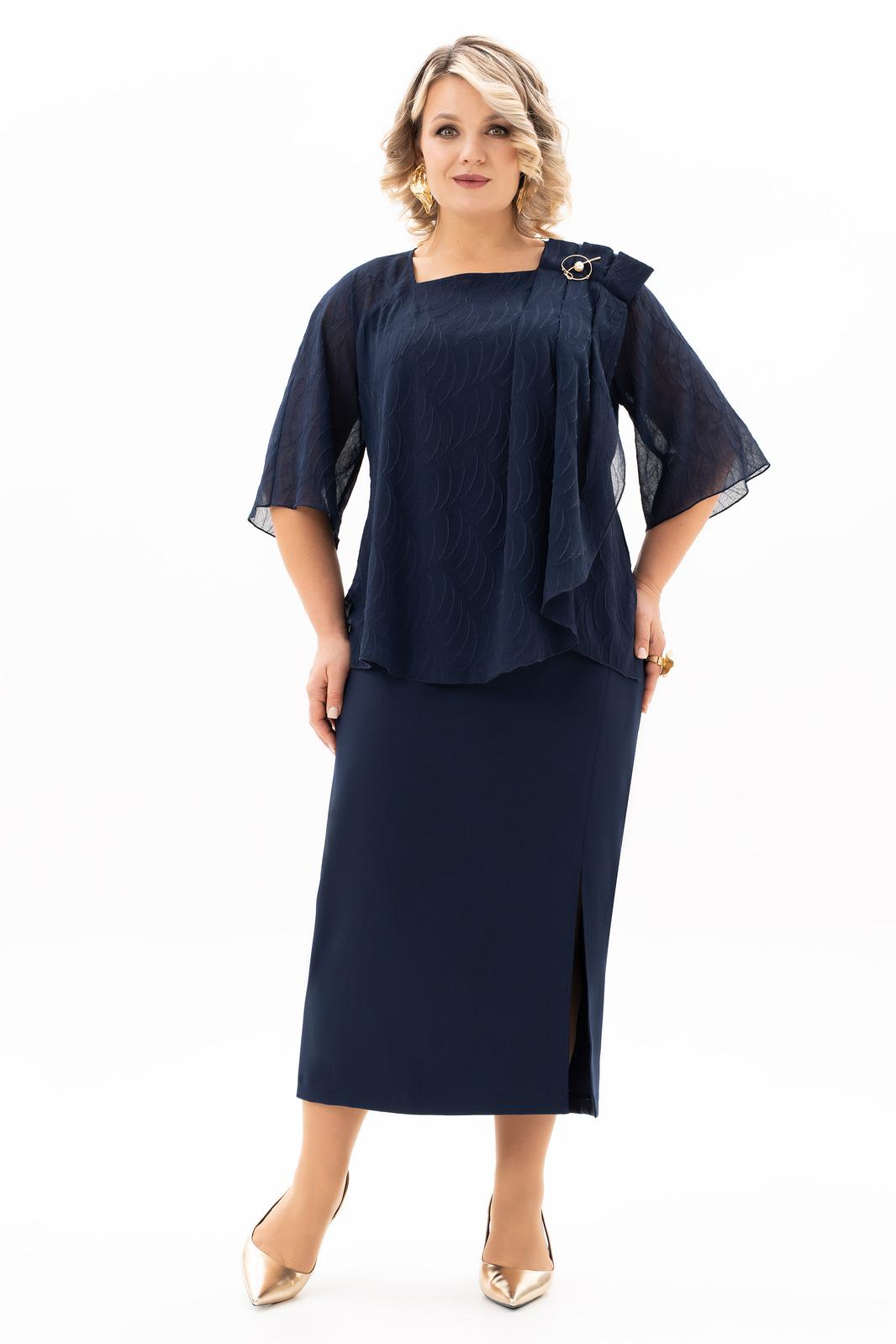 В мире моды женский костюм, состоящий из юбки и блузы, занимает особое место, объединяя элегантность, комфорт и практичность. Наш костюм, выполненный из высококачественной ткани c стрейч-эфектом. На полочки блузы есть нагрудные выточки с проймы, фигурный вырез горловины. Верхняя часть переда блузы декорирована мягкими складками и съёмной брошью, в боковых швах разрезы. Спинка без среднего шва. Модель блузы имеет и втачной рукав и реглан, длиной 3/4. Юбка демонстрирует утончённый дизайн с небольшим разрезом, который добавляет нотку игривости и женственности. Разрез не только делает образ более динамичным , но и придаёт ему определённую изюминку, позволяя Вам чувствовать себя уверенно и раскрепощено . Удобная и комфортная юбка на подкладке, слегка заужена к низу с застёжкой сзади на молнию и пуговицу. По поясу в области боковых швов есть эластичная тесьма, которая создаёт удобную посадку юбки на талии. Отличный вариант для офиса и вечернего гардероба, а также и просто для повседневного применения. Грация, изящество, утончённые декоративные элементы делают этот костюм уникальным. В этом костюме Вы будете неотразимы как в повседневной жизни, так и на любом торжестве.