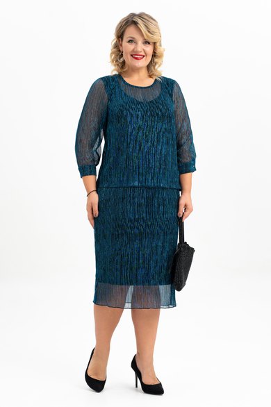 Элегантное плиссированное платье – стильный must-have для вашего праздничного гардероба! Полуприталенный силуэт и длина ниже колена делают это платье универсальным и практичным. Благодаря отлетным деталям переда и спинки, оно выглядит как изысканный костюм, сохраняя при этом легкость и комфорт. Мягкая плиссированная ткань и подкладка масло не сковывают движений, обеспечивая удобство в течение всего дня. Декоративная капелька на пуговицу по среднему шву спинки. Втачные рукава с элегантными манжетами на две декортивные пуговицы. Идеально подходит для торжественных мероприятий. Это платье будет великолепно смотреться в нарядном или молодежном стиле, дополняя Ваш образ в любое время года и любом мероприятии- день рождения, Новый год, свадьба и многие другие.