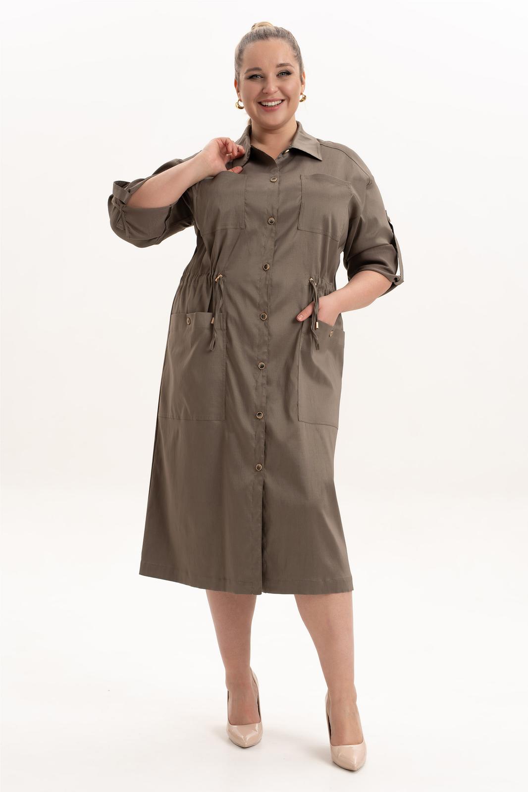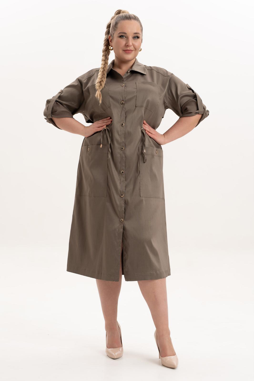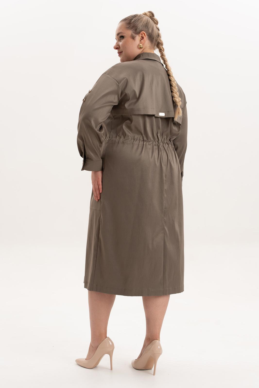 Платье офисное повседневное представляет собой идеальный выбор для женщин ищущих комфорт и стиль в ежедневной одежде. Это платье-плащ с застёжкой на петли и пуговицы, поясом на кулисе, добавляющими удобство в носке и возможность адаптации к различным фигурам. Благодаря универсальности, наряд можно носить и на работу, в офис, на прогулку и в ресторан. По спинке имеется средний шов, шлица и отлитная кокетка в верхней части спинки. Особенностью этой модели является декоративная кокетка , напоминающая плащ. Длинные рукава с манжетами и патами на петли и пуговицы, что позволяет регулировать длину рукава, гармонично дополняют классический фасон платья с воротником рубашечного типа. Большие накладные карманы и маленькие нагрудные по переду платья добавляют удобства в носке.Свободный оверсайз силуэт делает это платье универсальным. Такое платье призвано подчеркнуть природную женскую красоту и грацию, а также безупречный вкус его обладательницы.