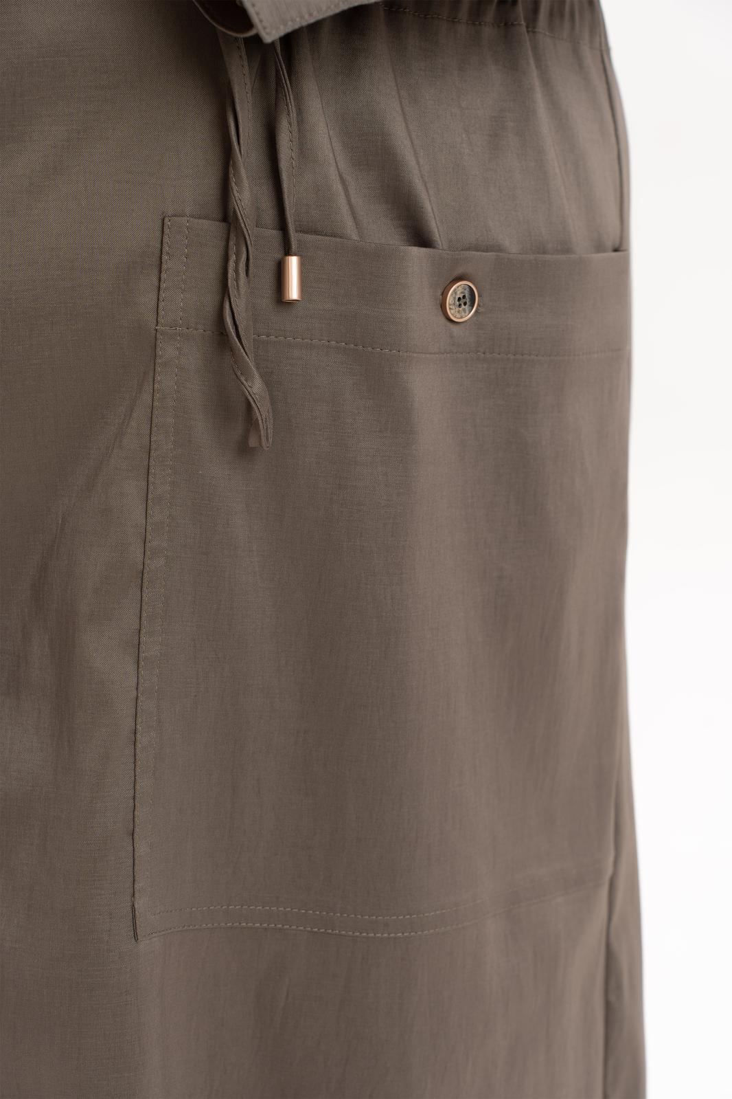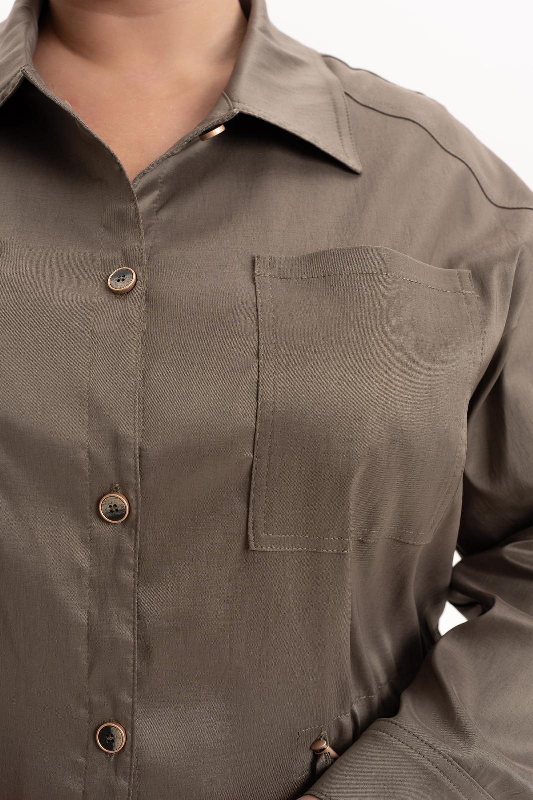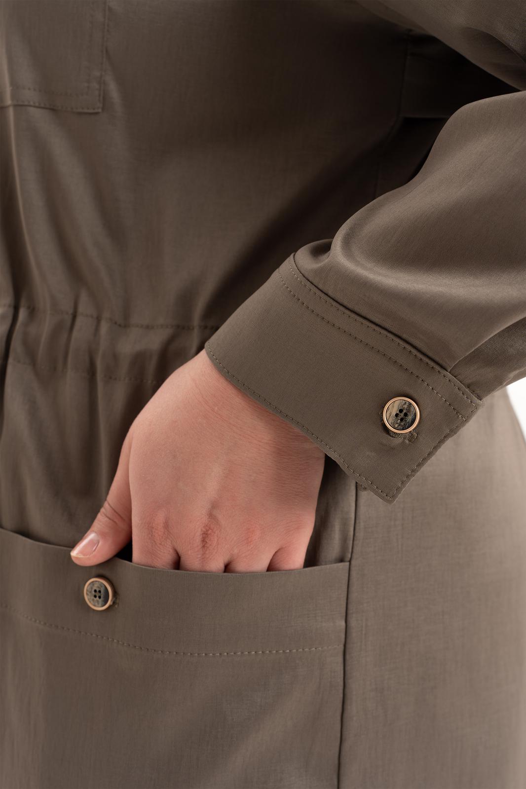 Платье офисное повседневное представляет собой идеальный выбор для женщин ищущих комфорт и стиль в ежедневной одежде. Это платье-плащ с застёжкой на петли и пуговицы, поясом на кулисе, добавляющими удобство в носке и возможность адаптации к различным фигурам. Благодаря универсальности, наряд можно носить и на работу, в офис, на прогулку и в ресторан. По спинке имеется средний шов, шлица и отлитная кокетка в верхней части спинки. Особенностью этой модели является декоративная кокетка , напоминающая плащ. Длинные рукава с манжетами и патами на петли и пуговицы, что позволяет регулировать длину рукава, гармонично дополняют классический фасон платья с воротником рубашечного типа. Большие накладные карманы и маленькие нагрудные по переду платья добавляют удобства в носке.Свободный оверсайз силуэт делает это платье универсальным. Такое платье призвано подчеркнуть природную женскую красоту и грацию, а также безупречный вкус его обладательницы.