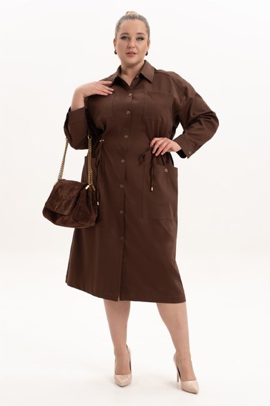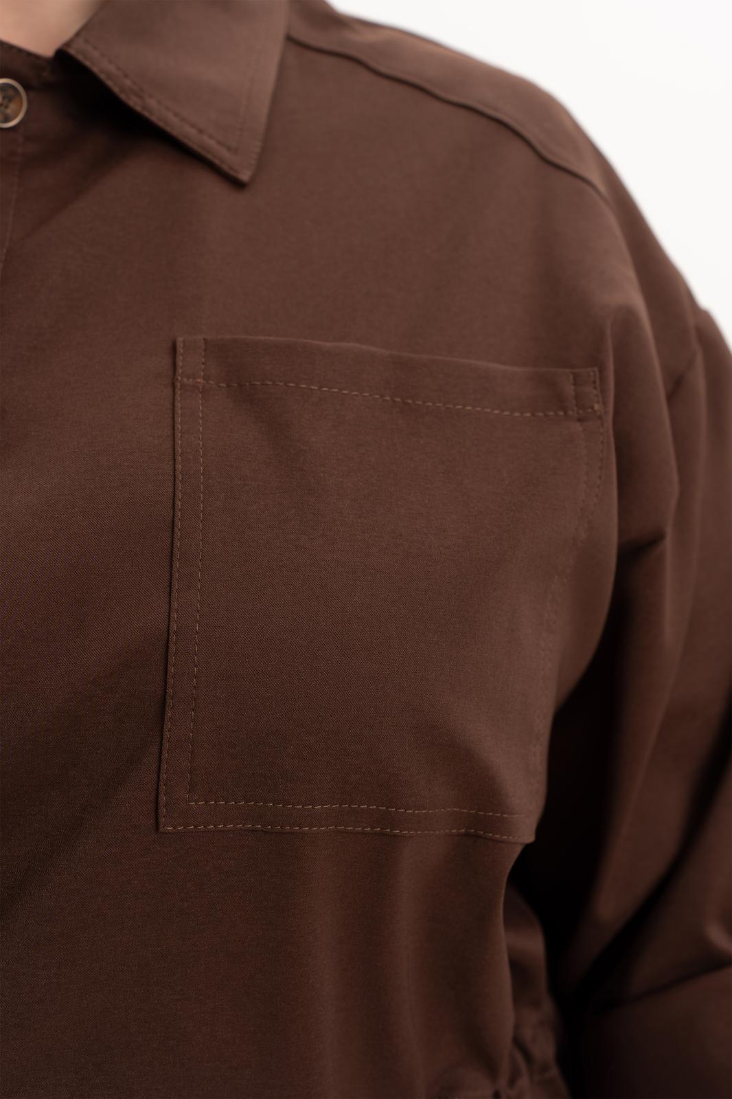 Платье офисное повседневное представляет собой идеальный выбор для женщин ищущих комфорт и стиль в ежедневной одежде. Это платье-плащ с застёжкой на петли и пуговицы, поясом на кулисе, добавляющими удобство в носке и возможность адаптации к различным фигурам. Благодаря универсальности, наряд можно носить и на работу, в офис, на прогулку и в ресторан. По спинке имеется средний шов, шлица и отлитная кокетка в верхней части спинки. Особенностью этой модели является декоративная кокетка , напоминающая плащ. Длинные рукава с манжетами и патами на петли и пуговицы, что позволяет регулировать длину рукава, гармонично дополняют классический фасон платья с воротником рубашечного типа. Большие накладные карманы и маленькие нагрудные по переду платья добавляют удобства в носке.Свободный оверсайз силуэт делает это платье универсальным. Такое платье призвано подчеркнуть природную женскую красоту и грацию, а также безупречный вкус его обладательницы.
