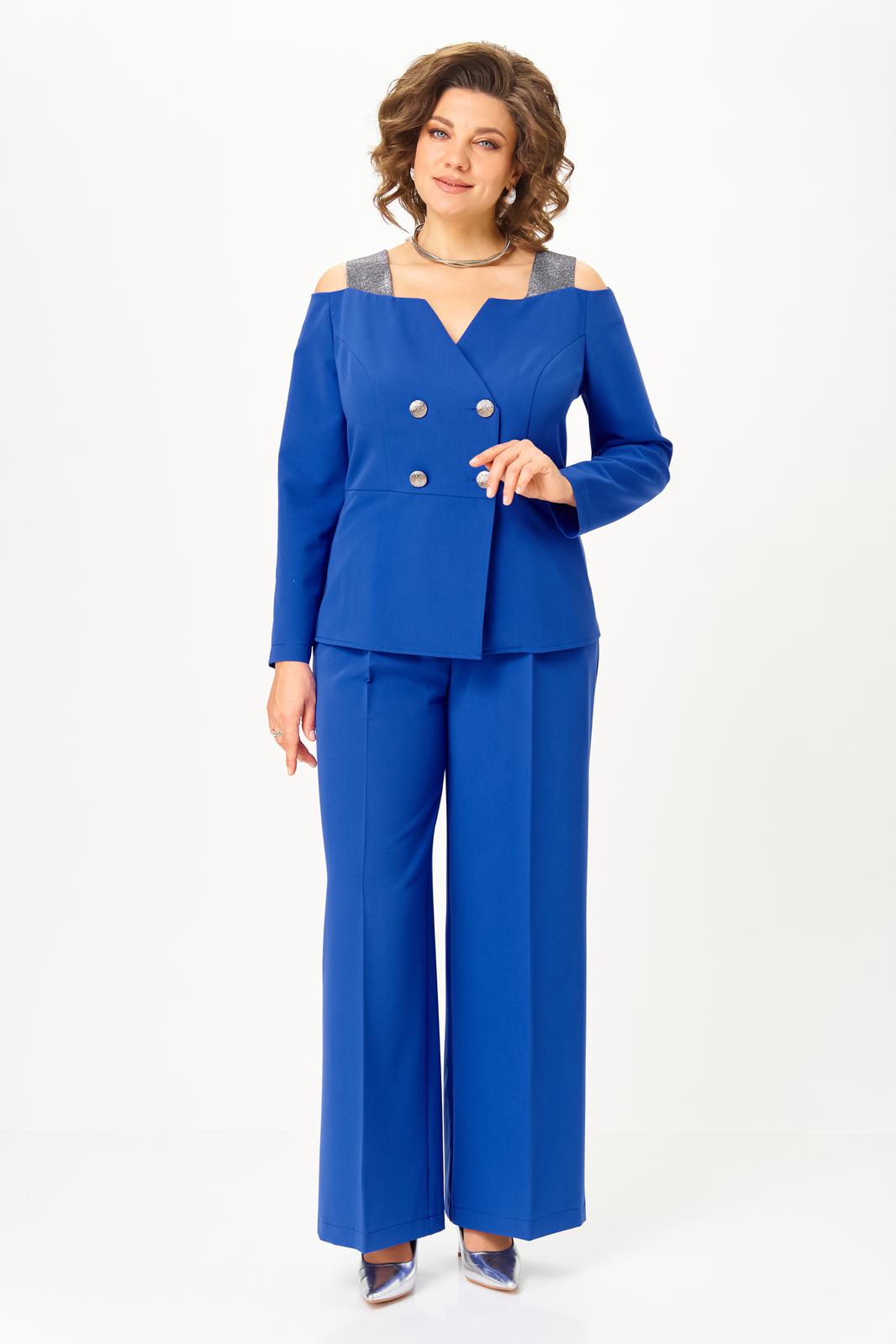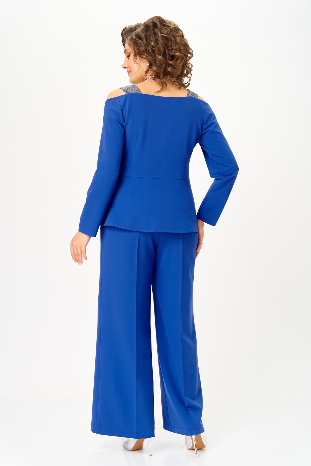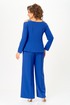 Костюм полуприлегающего силуэта, состоящий из жакета и брюк, выполнен из однотонной костюмной ткани. Ткань верха имеет механическое растяжение благодаря содержанию в ней эластана. Брючный костюм идеальный вариант на торжественные мероприятия.