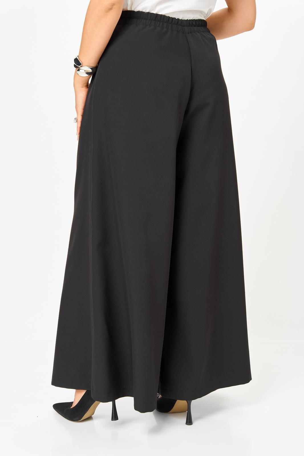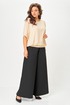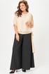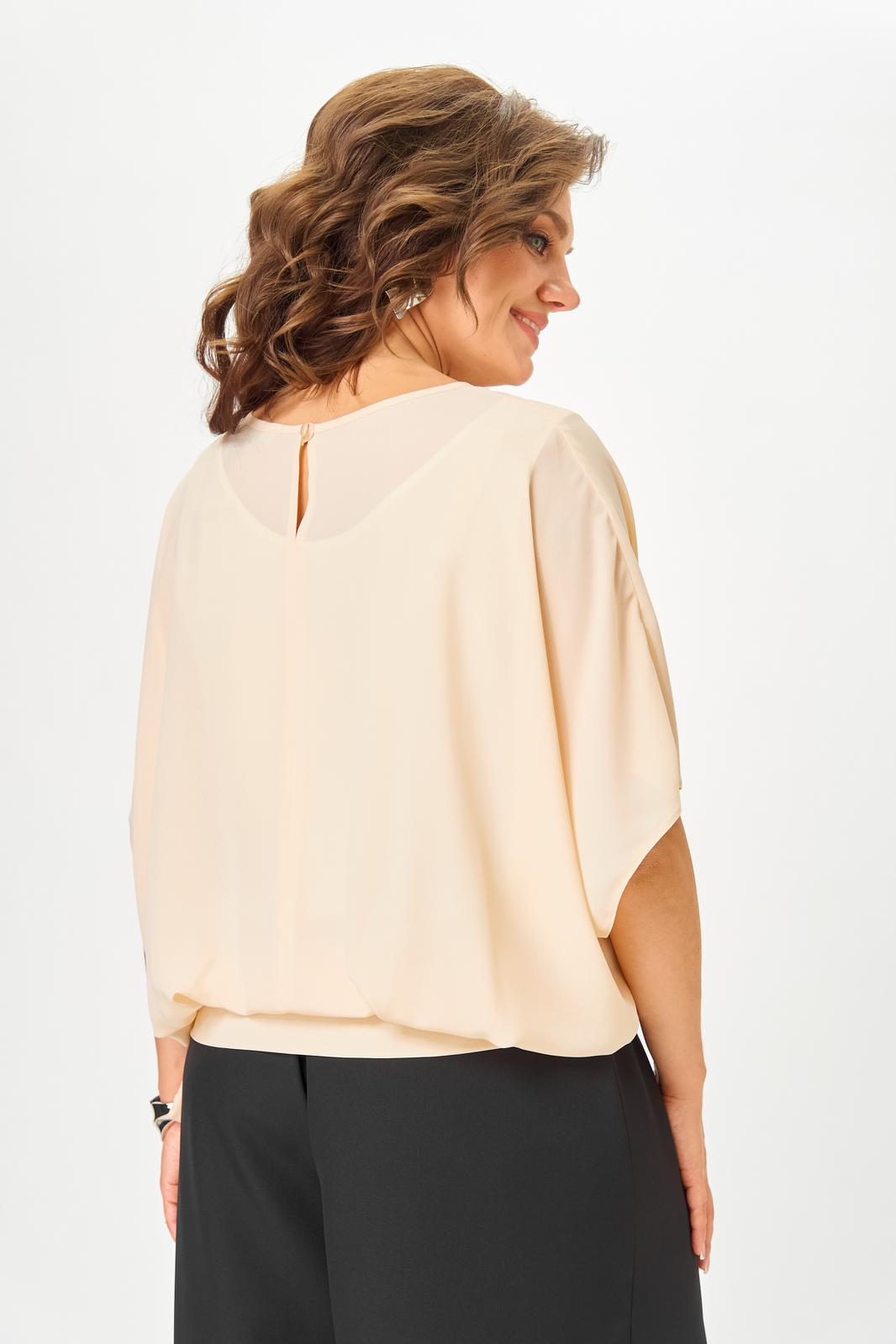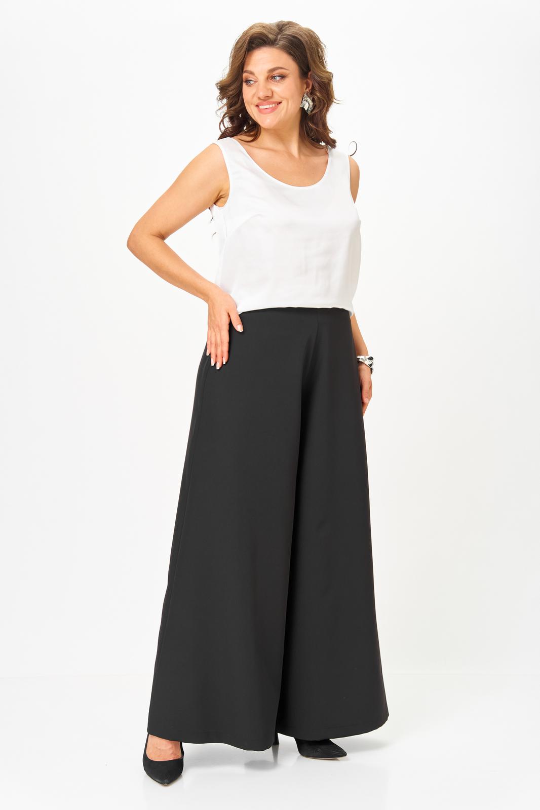 Комплект состоит из блузки топа и брюк. Блузка выполнена из однотонного креп-шифона, топ выполнен из блузочной однотонной ткани, брюки выполнены из однотонной струящейся ткани, контрастной по цвету.