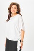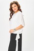 Рукав цельнокроеный, длиной до локтя. По низу блузка со складками и на притачном поясе, завязывающемся на левом боковом.