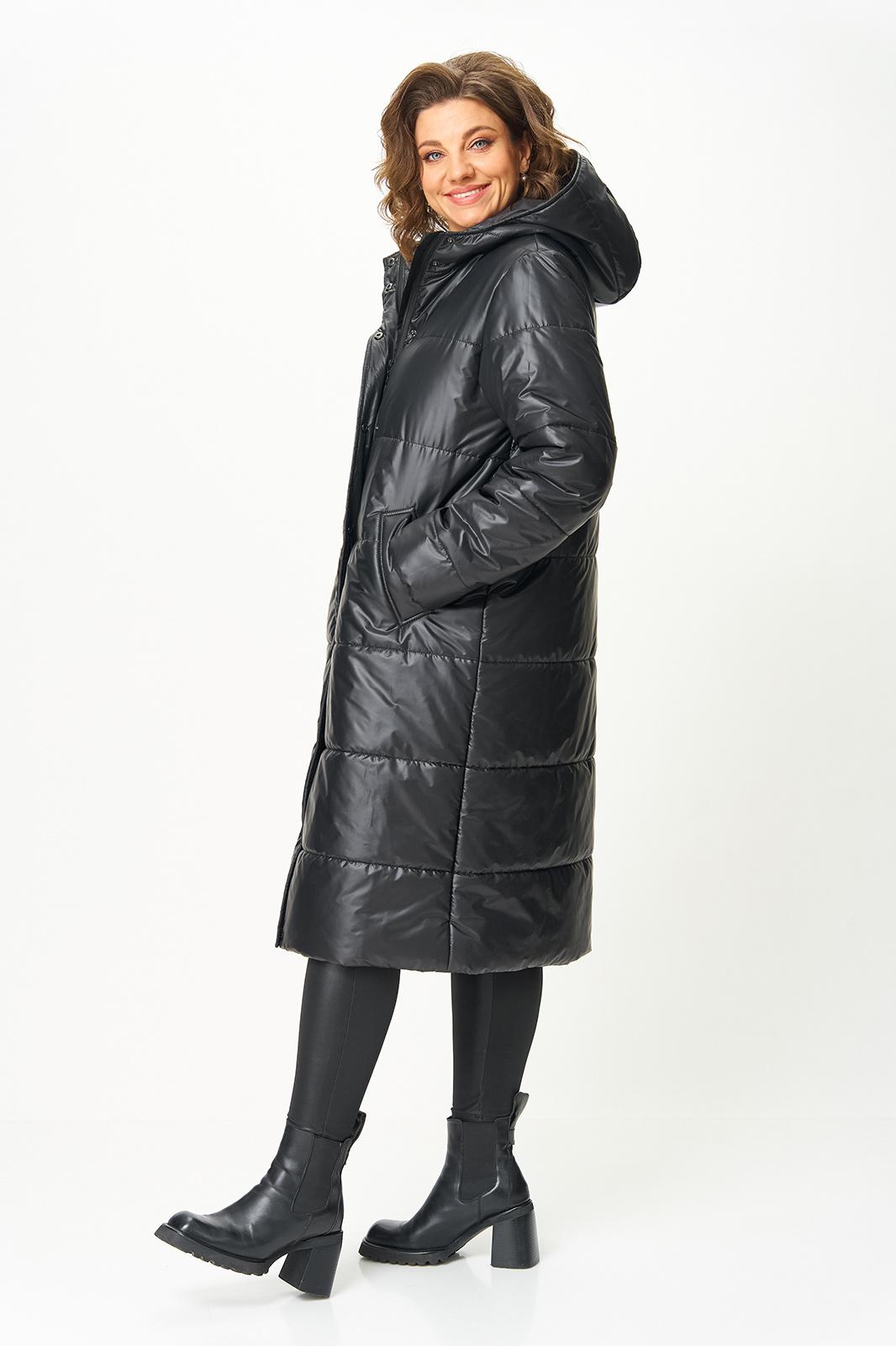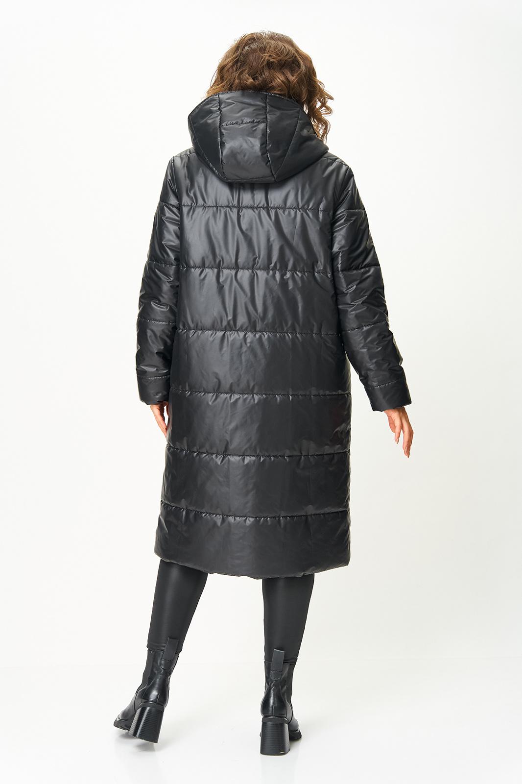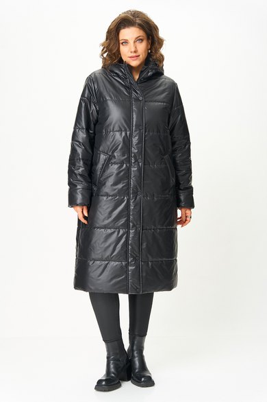 Полочка с центральной застежкой на молнию и притачной планкой с застежкой на кнопки. На полочке выполнены карманы с листочкой. Спинка цельная . Пальто с капюшоном. Рукав одношовный, втачной, по низу рукава, с внутренней стороны настрочена резинка. Пальто на подкладке.