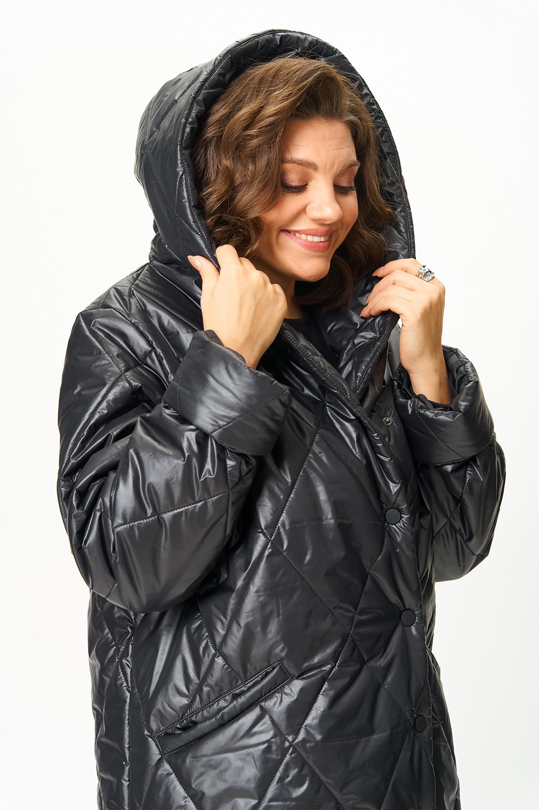 Полочка с центральной застежкой на кнопки. На полочке выполнены карманы с листочкой. Спинка цельная. Полупальто с капюшоном. Рукав одношовный, втачной, по низу рукав с отложной манжетой. Полупальто на подкладке.