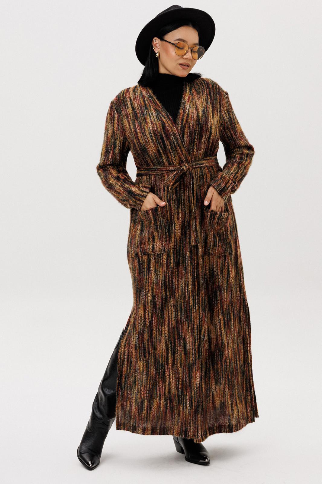 Женский кардиган – идеальный выбор для тех, кто ценит комфорт, стиль и универсальность. Эта вязаная кофта предназначена для женщин, желающих всегда выглядеть модно, будь то осень, зима, весна или лето. Благодаря удлиненному крою, изделие подходит как для повседневной носки, так и для особых случаев, подчеркивая вашу индивидуальность и женственность. Лёгкий трикотажный материал делает эту вещь отличным вариантом для теплого времени года, обеспечивает необходимое тепло в прохладную погоду. Кофта отлично садится на любые типы фигуры в стиле оверсайз, идеально подходит для беременных. Модель выполнена в трендовых цветах 2025 года, что гарантирует актуальность вашего гардероба. Этот женский кардиган легко комбинируется с другой одеждой – от строгих брюк до легких платьев, подходит для офиса и прогулок. Особое внимание уделено деталям и аккуратной отделке. Чтобы ничего не сковывало ваши движения- по бокам разрезы, а для практичности - накладные карманы и пояс. Нарядная и женственная модель подчеркивает достоинства фигуры и делает образ завершенным. Главное конкурентное преимущество – сочетание качества премиальной вязки и современного дизайна, что выделяет этот товар среди других кофт и кардиганов на рынке. Если вы ищете стильные, трендовые и одновременно практичные решения, выбирайте этот вариант – он создан для женщин, которые ценят комфорт и индивидуальность. Длина по спинке: (50-54)-129см, (56-60) -131см, Длина рукава: (50-54)-60см, (56-60): 61см