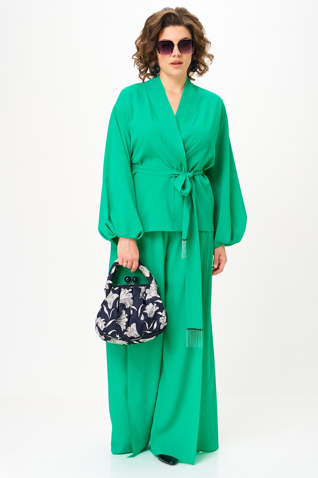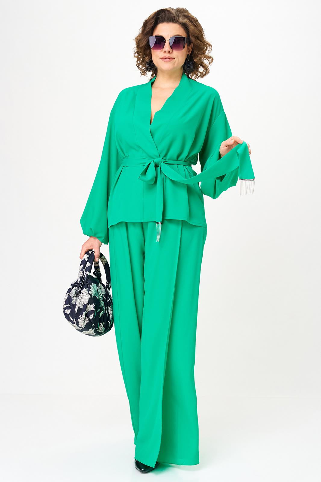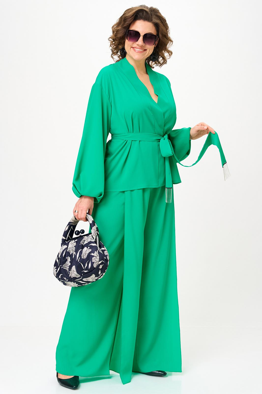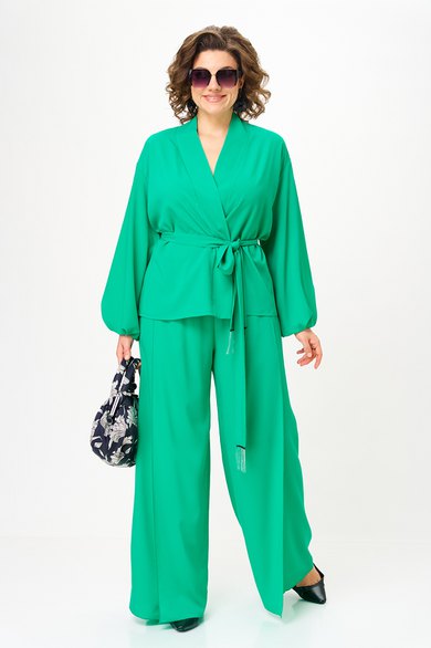 Элегантный вечерний костюм-двойка, состоящий из блузки свободного кроя и широких брюк. Красивый и эффектный брючный костюм - это идеальный образ для особых случаев, вечерних выходов, праздничных и торжественных мероприятий, будь то корпоратив, свадьба, юбилей, выпускной, день рождения, Новый год Блузка прямого силуэта со пущенной линией плеча. Рукав двойной, расширенный к низу со складками. По спинке и полочке идет планка. В комплекте с блузкой идет съемный пояс. На концах пояса металлизированная бахрома. Брюки прямые с запахом по переду, пояс на резинке.Благодаря фасону и крою, костюм визуально вытянет силуэт, сделает фигуру стройнее, подчеркнет ее достоинства, скроет недостатки. Элегантный брючный костюм от Anastasia- комфорт и уверенность в себе на любом мероприятии Длина блузки: (48-56)-61см. Длина рукава-52см. Длина брюк:(48-54)-105см., (56)-108см.
