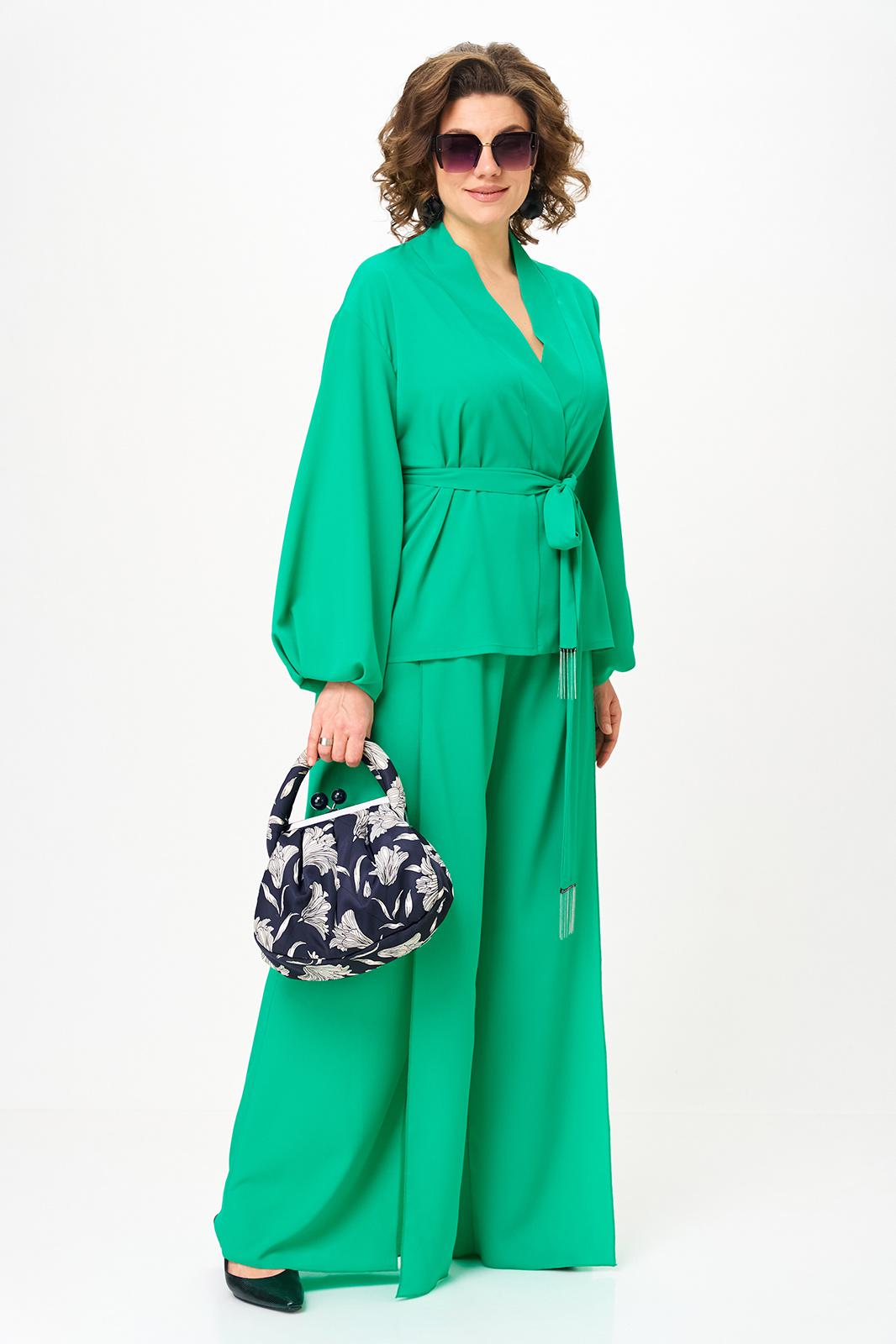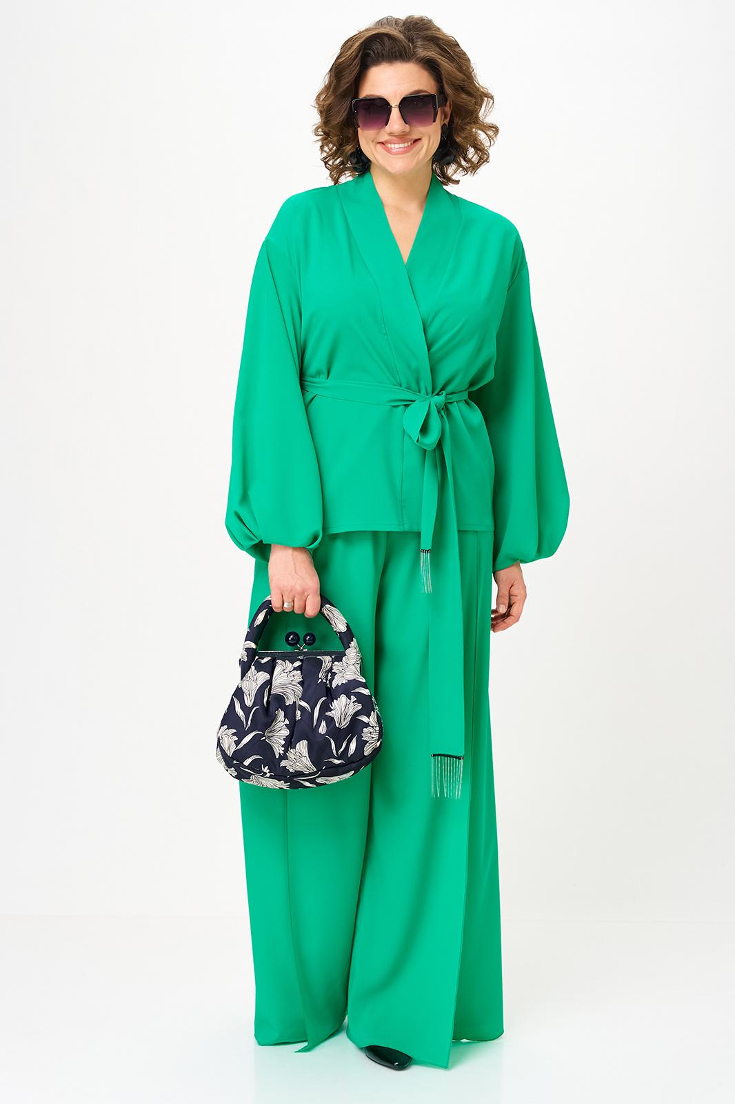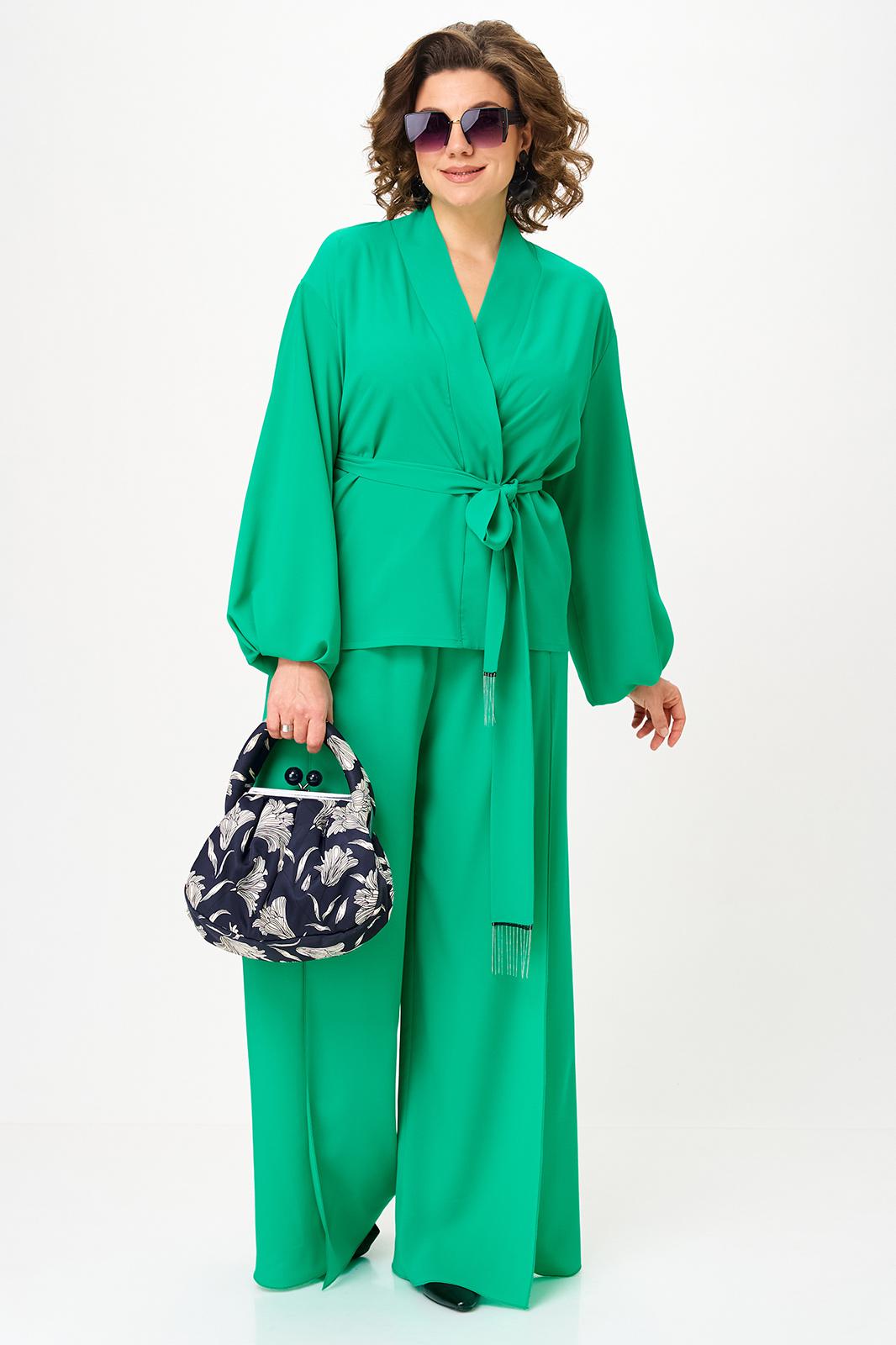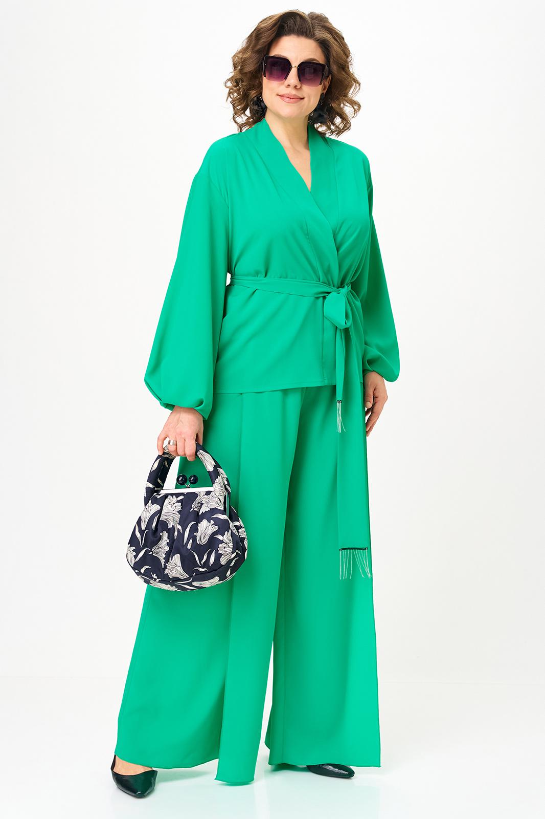 Элегантный вечерний костюм-двойка, состоящий из блузки свободного кроя и широких брюк. Красивый и эффектный брючный костюм - это идеальный образ для особых случаев, вечерних выходов, праздничных и торжественных мероприятий, будь то корпоратив, свадьба, юбилей, выпускной, день рождения, Новый год Блузка прямого силуэта со пущенной линией плеча. Рукав двойной, расширенный к низу со складками. По спинке и полочке идет планка. В комплекте с блузкой идет съемный пояс. На концах пояса металлизированная бахрома. Брюки прямые с запахом по переду, пояс на резинке.Благодаря фасону и крою, костюм визуально вытянет силуэт, сделает фигуру стройнее, подчеркнет ее достоинства, скроет недостатки. Элегантный брючный костюм от Anastasia- комфорт и уверенность в себе на любом мероприятии Длина блузки: (48-56)-61см. Длина рукава-52см. Длина брюк:(48-54)-105см., (56)-108см.
