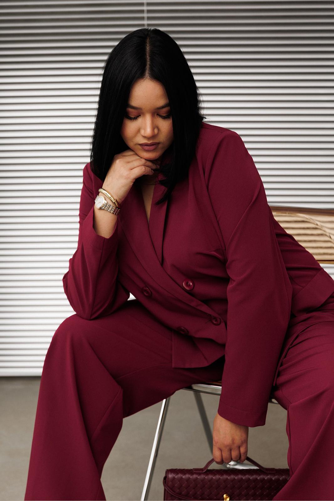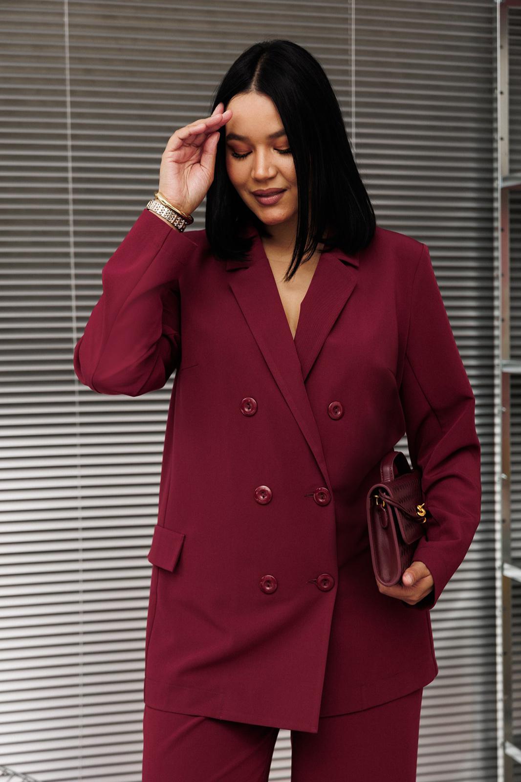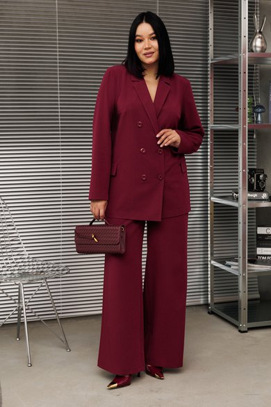 Женский брючный костюм — это идеальное сочетание стиля, комфорта и универсальности, которое станет вашим верным спутником как на деловых встречах, так и на торжественных мероприятиях. Изготовленный из высококачественной поливискозной ткани, этот костюм обеспечивает легкость и приятные ощущения при носке, а его элегантный пиджак и классические брюки подчеркивают вашу женственность и утонченность. Костюм женский 2-х предметный: жакет и брюки. Жакет полуприлегающего силуэта: бочок с выточкой по полочеке, по спинке средний шов. Застежка двухбортная, карман клапан обманка. Рукав двухшовный. Брюки прямые. По полочке карман и складки. Пояс на резинке. Строгий и модный фасон делает его актуальным в любой ситуации, будь то офис, свадьба или прадничный выход. Длина жакета: 73см . Длина рукава: 62см. Длина брюк: 100 см.