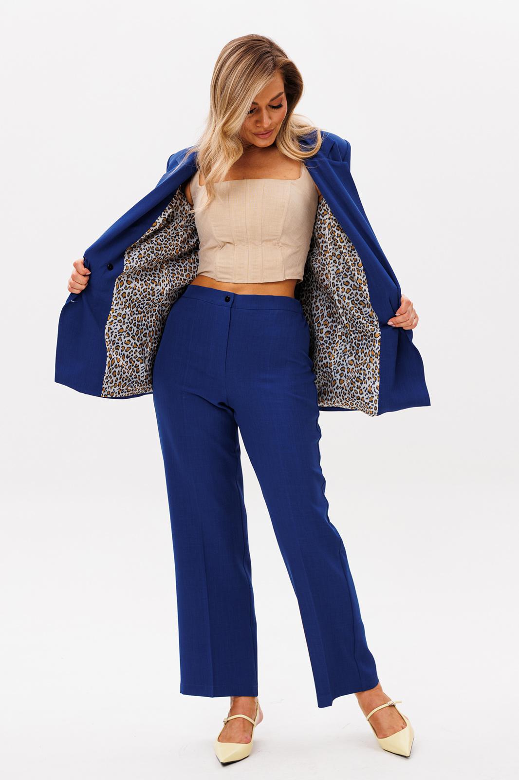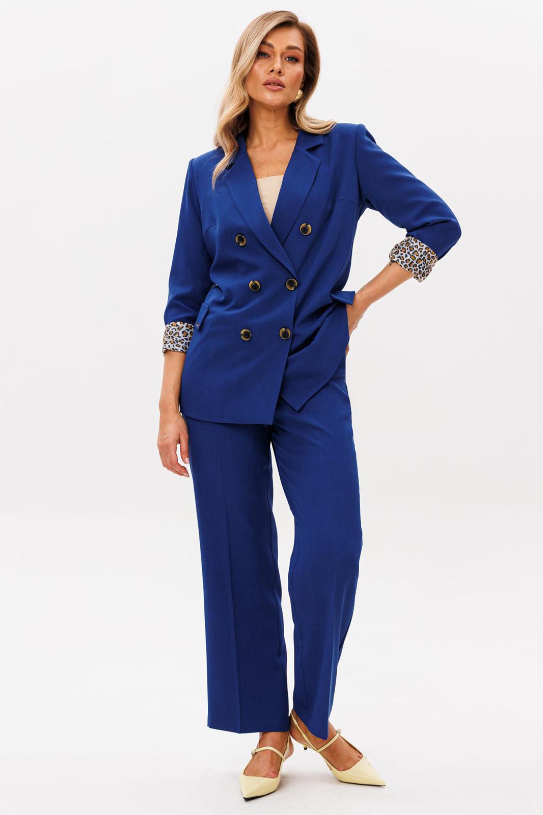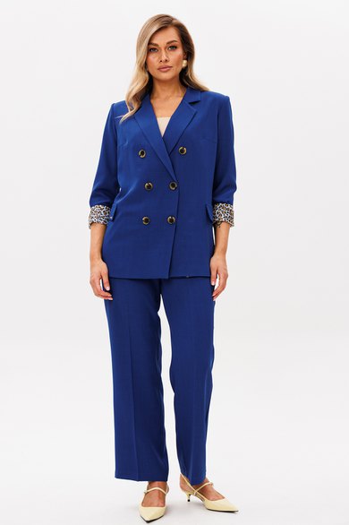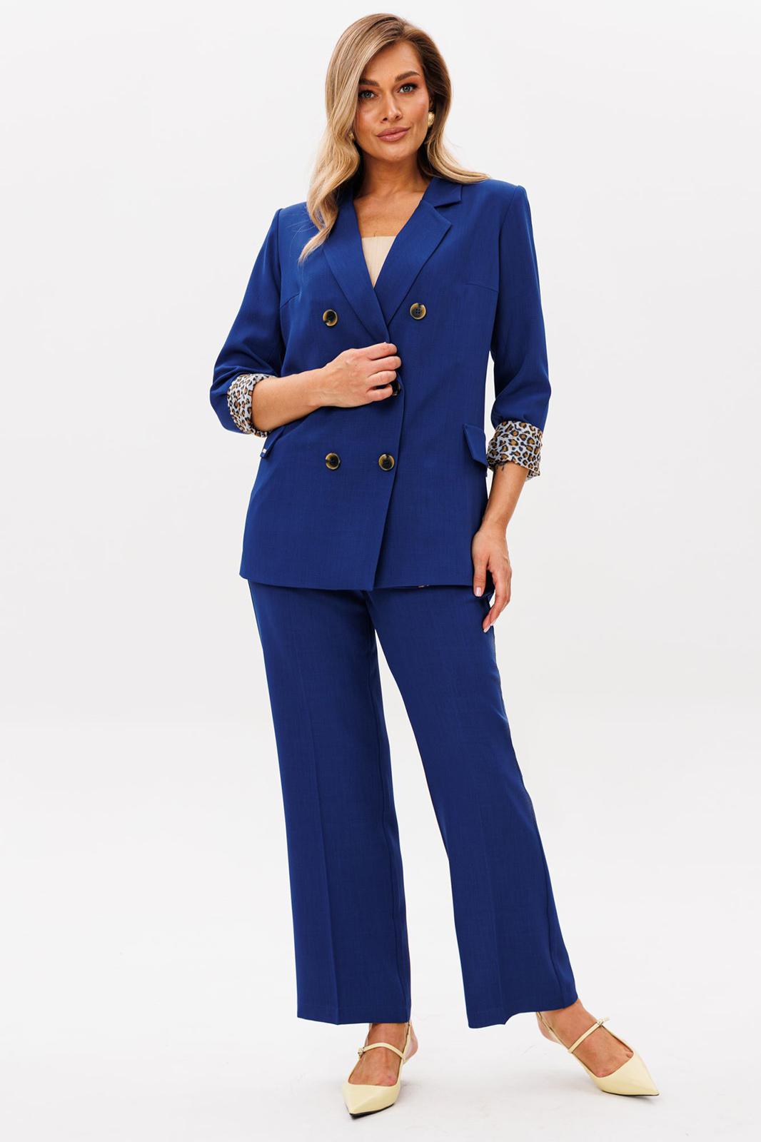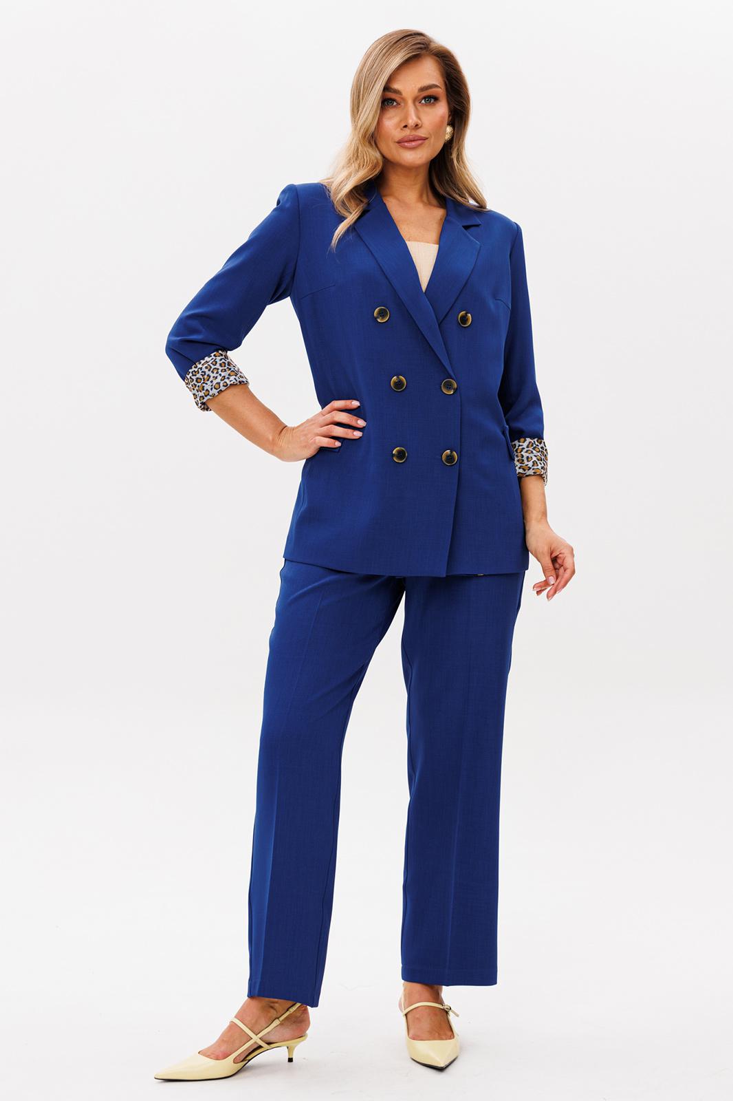 Женский брючный костюм — это идеальное сочетание стиля, комфорта и универсальности, которое станет вашим верным спутником как на деловых встречах, так и на торжественных мероприятиях. Изготовленный из высококачественной ткани, этот костюм обеспечивает легкость и приятные ощущения при носке, а его элегантный пиджак и классические брюки, подчеркивают вашу женственность и утонченность. Строгий и модный фасон делает его актуальным в любой ситуации, будь то офис, свадьба или выпускной вечер. Костюм изготовлен на подкладке с модным принтом, что добавляет шарма к вашему образу. Выбирая этот костюм, вы выбираете уверенность в себе и безупречный стиль, который никогда не выйдет из моды. Позвольте себе быть великолепной в каждой детали! Брючный костюм женский — это не просто одежда, а воплощение элегантности и стиля, которое идеально подходит для современной женщины. Костюм брючный женский деловой станет вашим незаменимым спутником в офисе, подчеркивая вашу профессиональность и уверенность. Женские брючные костюмы классические всегда остаются в моде, благодаря своему универсальному дизайну и высокому качеству материалов. Женские брючные костюмы с пиджаком создают гармоничный и завершенный образ, который подходит как для деловых встреч, так и для вечерних мероприятий. Костюм с брюками осенний женский обеспечит вам комфорт и легкость в осенние дни. Этот костюм станет вашим любимым выбором для любого сезона, будь то весна, лето или осень. Выбирая женский брючный костюм от Anastasia, вы выбираете стиль, комфорт и уверенность в себе. Костюм женский 2-х предметный: жакет на подкладке и брюки. Жакет полуприлегающего силуэта: бочок с выточкой по полочеке, по спинке средний шов. Застежка двухбортная, карман клапан обманка. Рукав вточной двухшовный. Брюки прямые со стрелками. Застежка по передней части на молнию. Пояс отрзной, по бокам вставлена резинка. Длина жакета: (48-52)73см, (54-58)-74см . Длина рукава: (48-58)-62см. Длина брюк: (48-52)-105 см, (54-58)- 107см