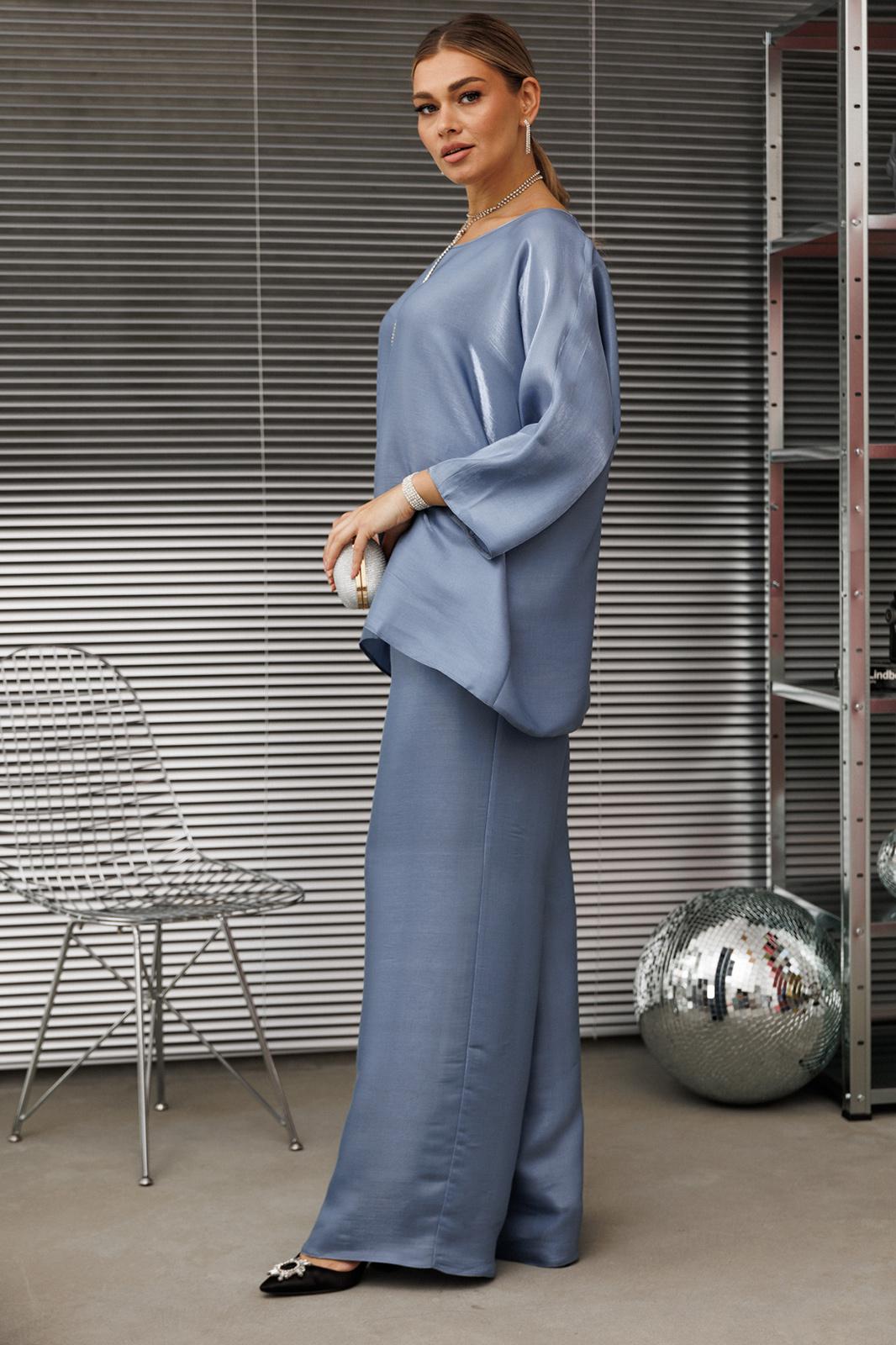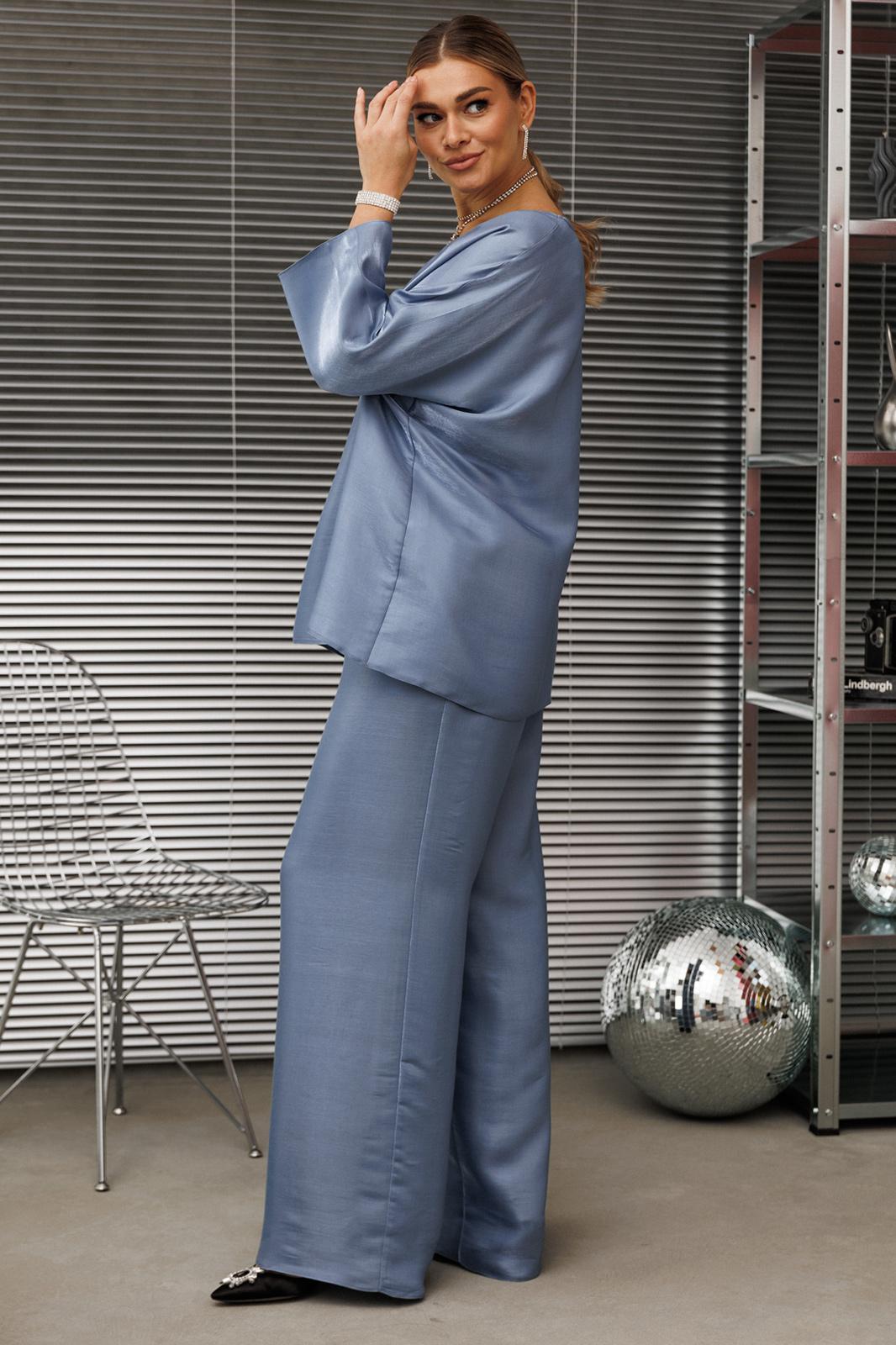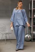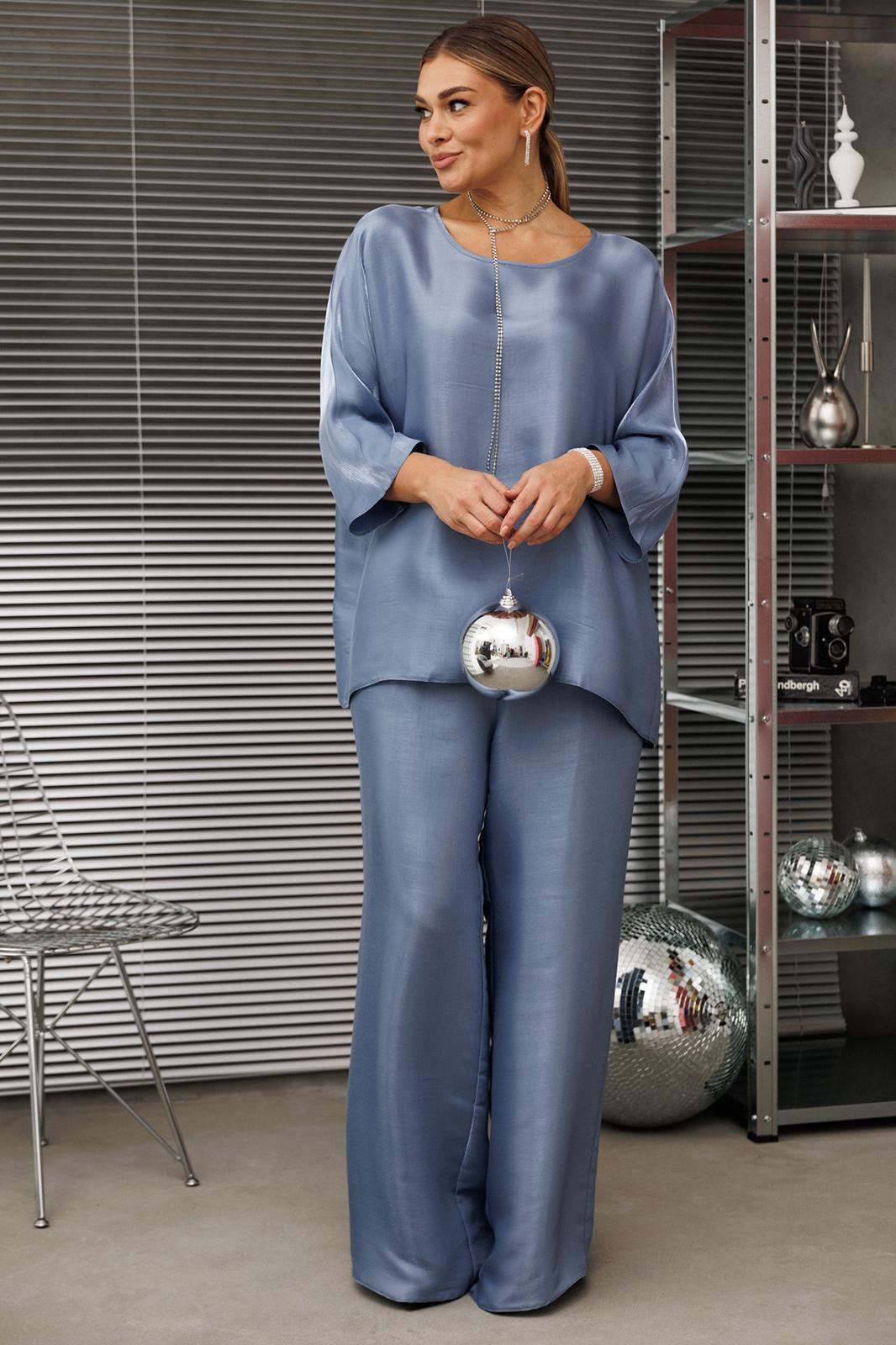 Оригинальный костюм от бренда Anastasia - идеальный выбор для любого случая. Костюм женский 2-х предметный (блузка, брюки) из легкой вискозной ткани с блеском. Блузка прямого силуэта с цельнокроеным рукавом. Брюки прямые, пояс на резинке, по бокам карманы. Костюм отлично подойдет как для повседневной носки, так и для праздничных выходов. Достаточно дополнить его соответствующими аксессуарами. Предметы комплекта легко будут сочетаться с вещами из Вашего гардероба. Длина блузки (по спинке): (48-52)-66см.,(54-58)-69см. Длина рукава (от горловины): (48-52)-57см., (54-58)-59см. Длина брюк: (48-52)-100см., (54-58)-103см.