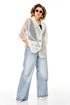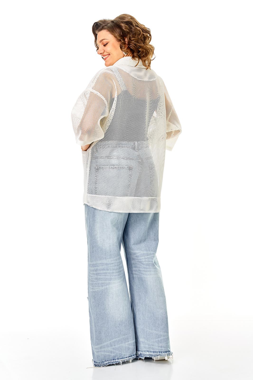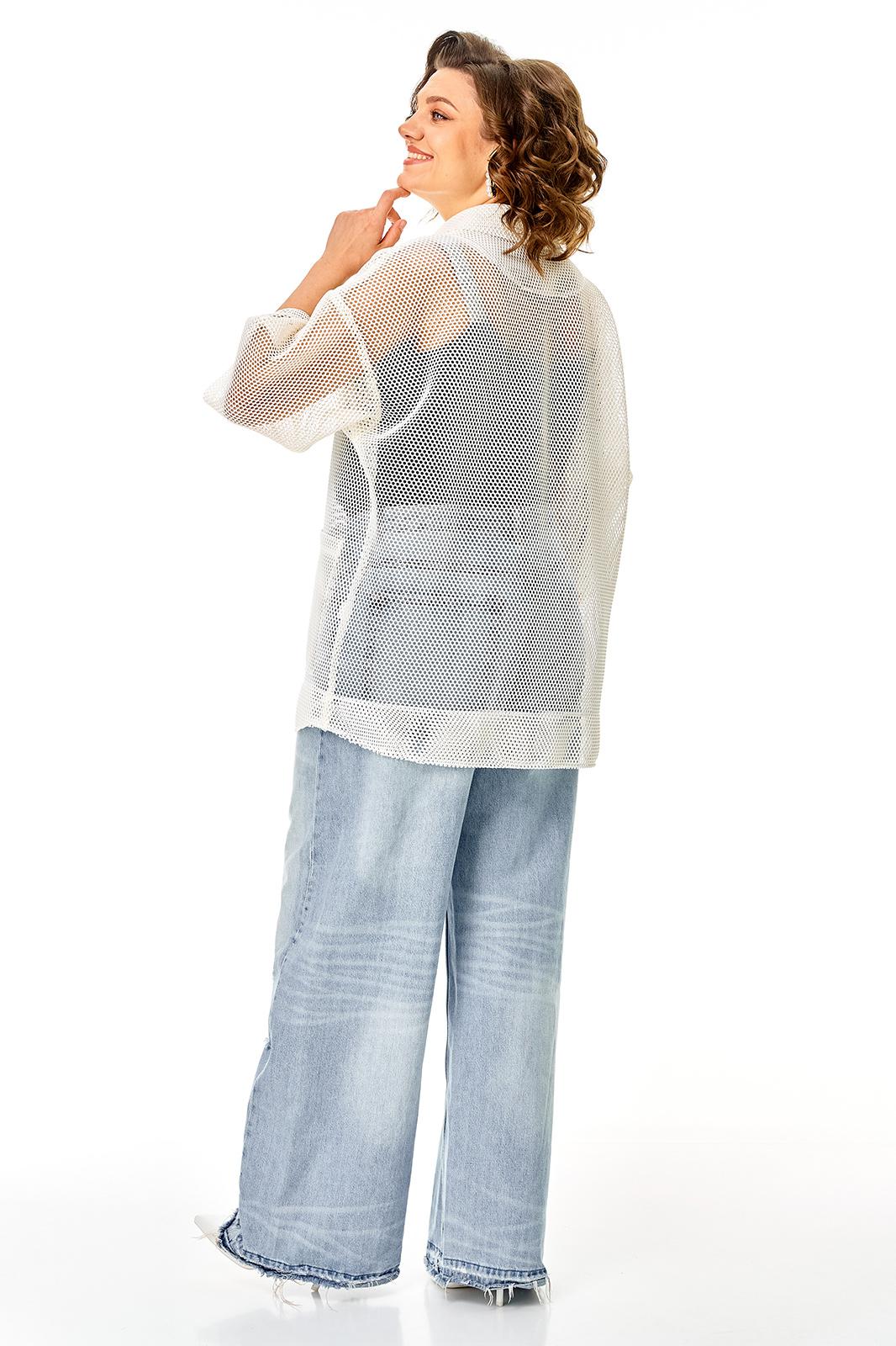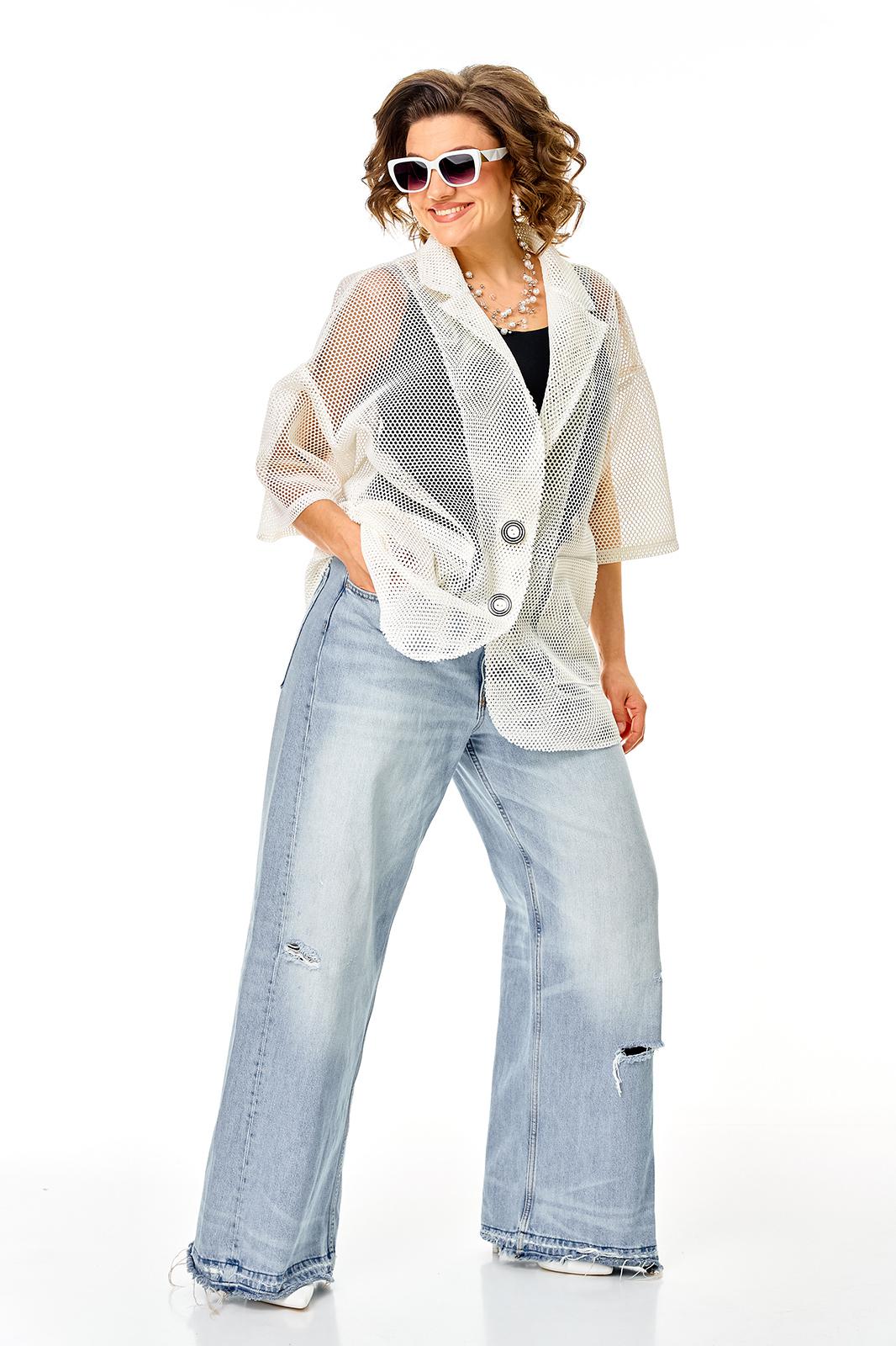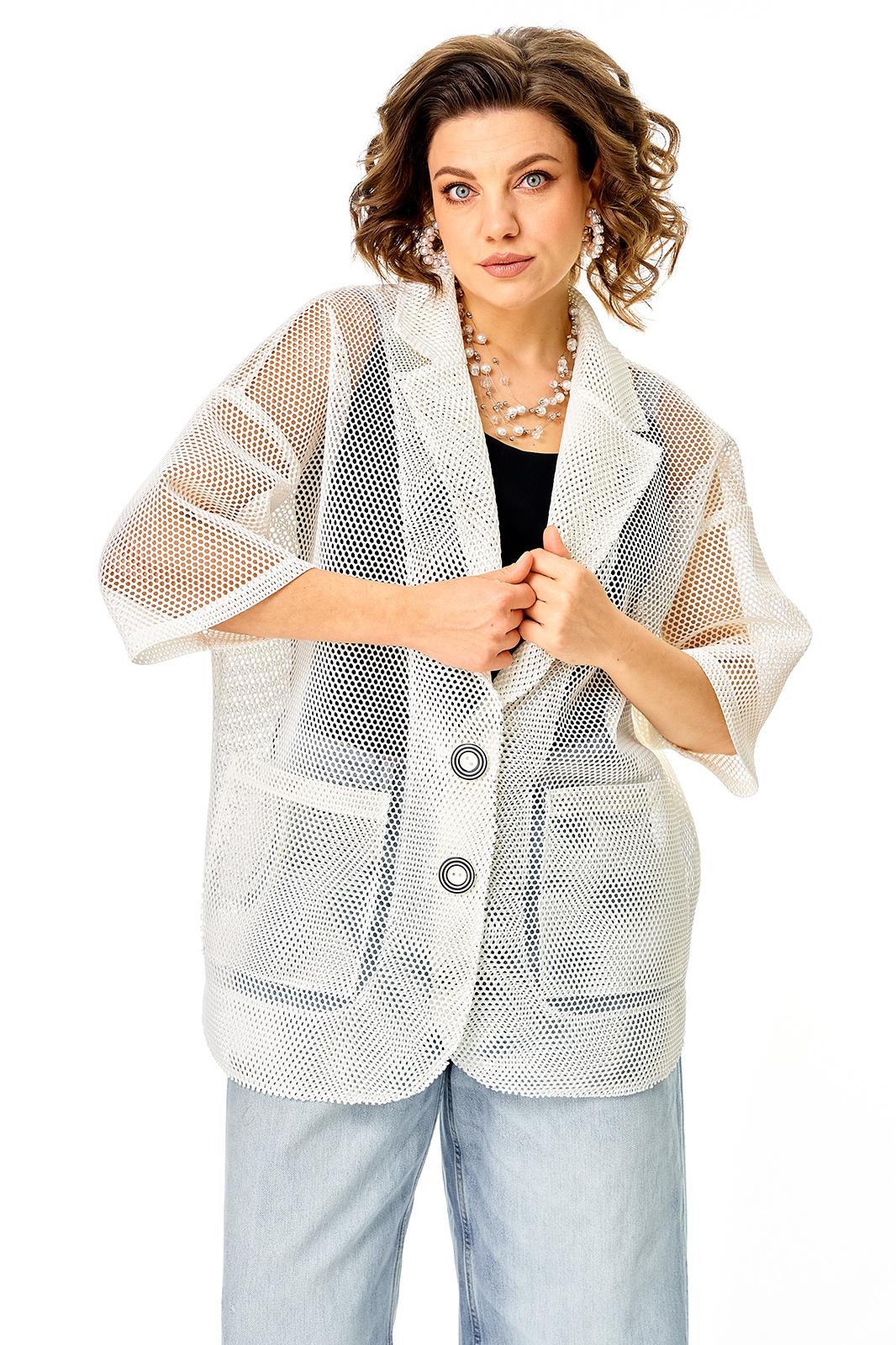 Жакет женский из оригинального трикотажного полотна, напоминающего объемные соты, станет отличным дополнением к вашему гардеробу. Модель прямого силуэта со спущенным рукавом, рукав 3/4 длины, застежка на петлю и пуговицу, воротник пиждачного типа. По полочке идут накладные карманы, низ фигурный. Все шва и срезы не обработаны. Длина рукава: (50-66)-28 см. Длина по спинке : (50-54)-76 см., (56-60)-78 см, (62-66)-80 см