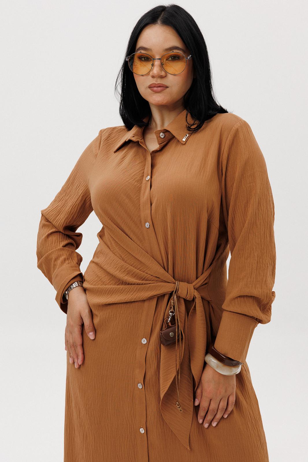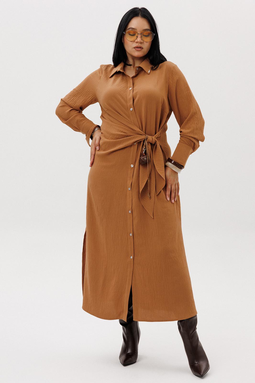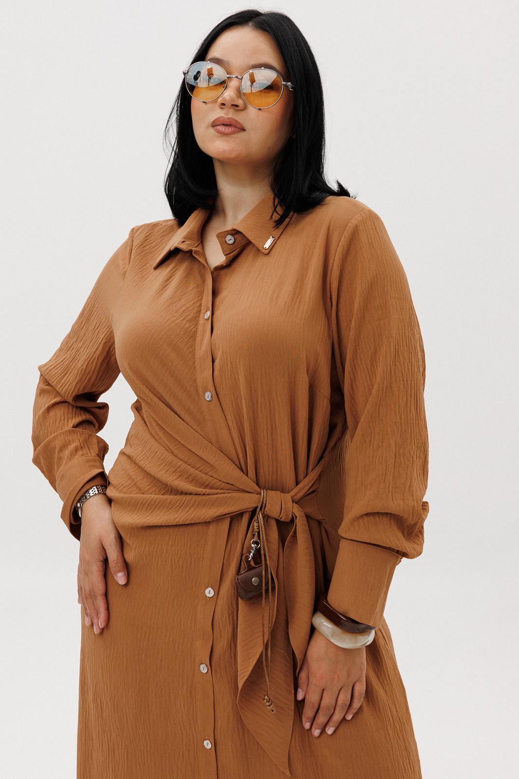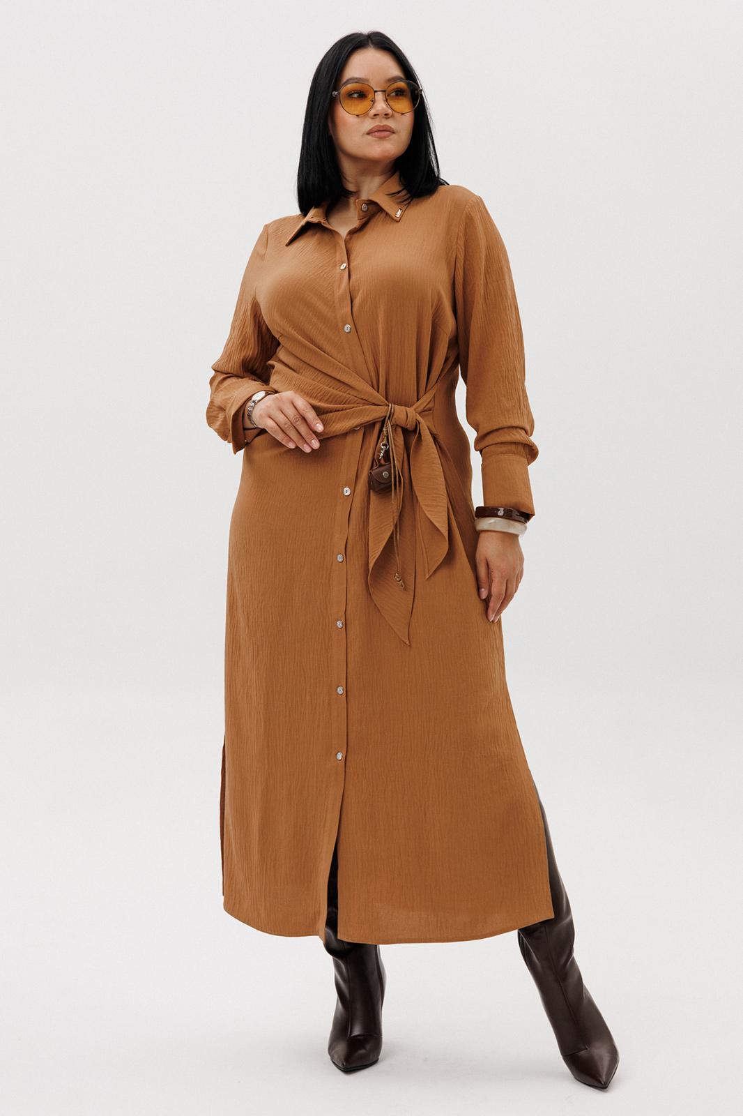Платье рубашка от бренда «Анастасия» - создано для тех, кто ценит комфорт и элегантность. Изготовленное из турецкой ткани, оно обеспечивает мягкость и легкость при носке. Платье оригинального кроя. Полочка ассиметричная: с одной стороны идет драпировка, переходящая в пояс, со второй стороны: пояс-завязка из бокового шва. Застежка -планка на петли и пуговицы. Платье миди дополнено отложным воротником и длинными рукавами на манжете. Платье с пуговицами спереди подходит практически всем. Нарядное платье идеально для повседневной носки и стиля casual кэжуал. Повседневное платье рубашка - необычный вариант на каждый день, для прогулок, встреч в кафе и даже для работы, если позволяет дресс-код. Наряд надевают не только на повседневку, но и на фотосессию, на праздничные мероприятия – день рождения, новый год, новогодняя вечеринка. Модное платье с длинными рукавами можно комбинировать с разной обувью и одеждой для создания молодежных образов. Стильное платье идеально подойдет для повседневных выходов, особенно когда нужно добавить шарма и изящности в ваш образ. Оно также станет отличным выбором для особых случаев, таких как свадьба подруги, новогодний вечер или другие праздничные мероприятия. Универсальная длина миди и классический фасон рубашки делают его отличным выбором как для повседневного, так и для делового образа. Идеальное сочетание стиля и удобства для тех, кто ценит изысканность в каждой детали. Нам важно ваше мнение отзывы. Длина по спинке (48-52)-125см, (54-58)-126см. Длина рукова с манжетой: (48-58)-63см.