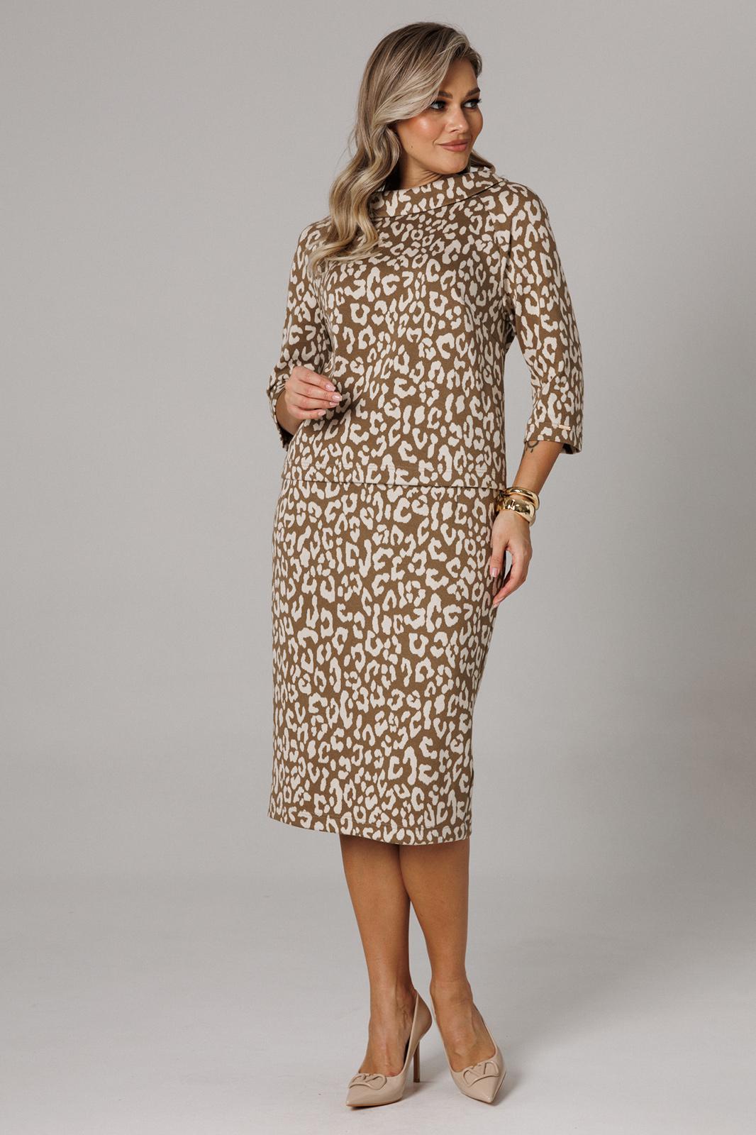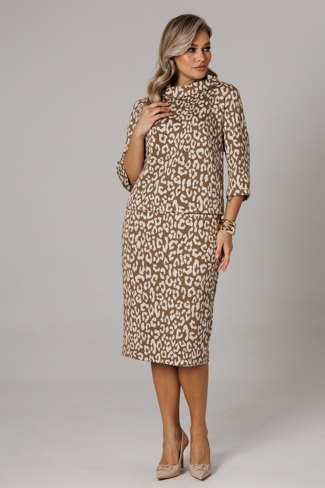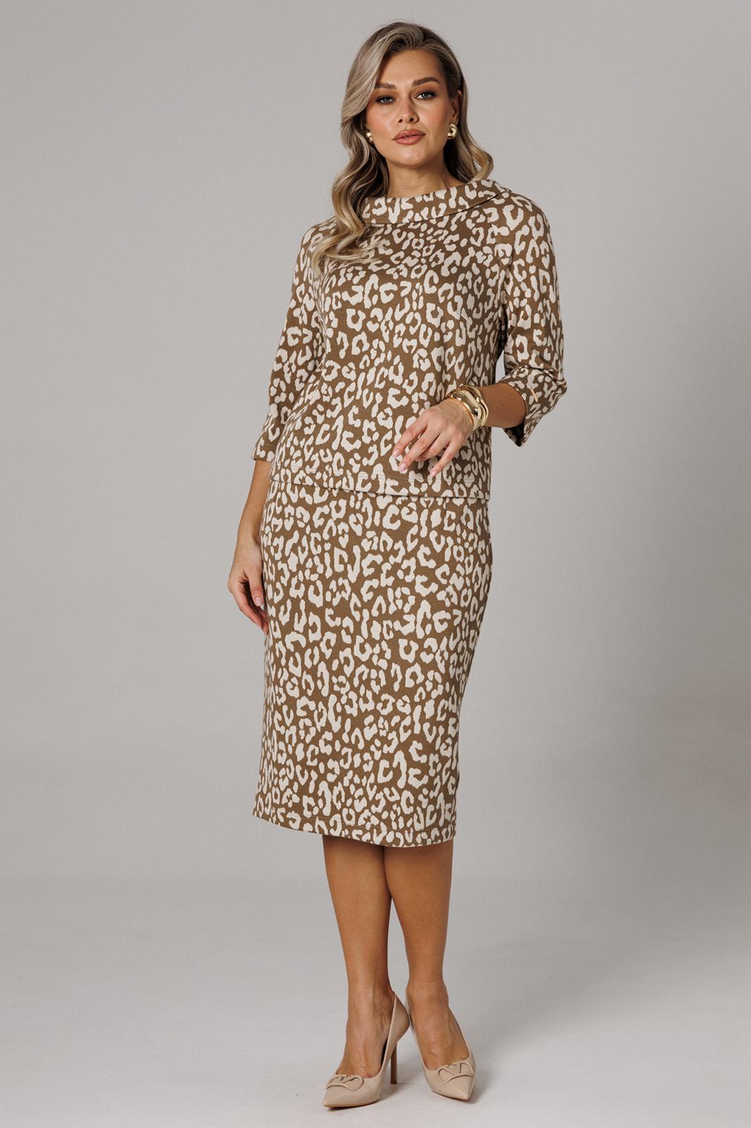 Женский костюм двойка из хлопкового трикотажного полотна с анималистическим принтом станет изюминкой вашего гардероба. Этот деловой комплект с блузкой плюс сайз станет отличным выбором для офисных работников и всех, кто ценит комфорт и стиль в одежде. Юбка без подкладки обеспечивает свободу движения, а длина (миди) делает ее универсальной для любого типа фигуры. Блузка без застежки с воротником шалевой формы - это не только функциональный, но и стильный женственный акцент в образе. Длина рукава в блузке plus size 3/4 делает костюм универсальным. Этот теплый классический костюм создан для повседневной носки и будет радовать вас своей мягкостью и комфортом даже в самые холодные дни. Комплект шикарный и создан с учетом особенностей женской фигуры и идеально подойдет для обладательниц пышных форм, для высоких и невысоких. Он одинаково хорошо смотрится на стройных и плюс сайз, с большой и маленькой грудью. Благодаря своему строгому и элегантному дизайну, юбочный костюм станет незаменимым элементом вашего гардероба и поможет создать множество деловых и вечерних образов. Почувствуйте себя уверенно и комфортно с стильным костюмом от Анастасия! Комплект без подклада, не на флисе, без начеса, ткань не просвечивает. Длина блузки-53см. Длина рукава (от горловины) - 55см. Длина юбки-72см.