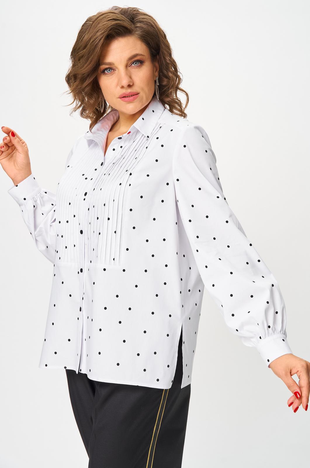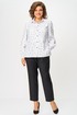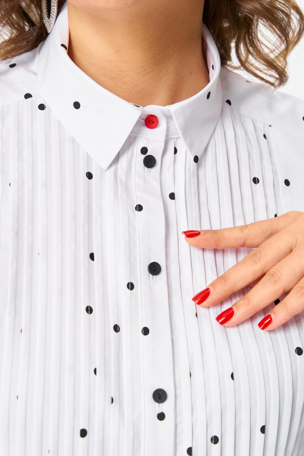 Классическая хлопковая блузка прямого силуэта станет любимой вещью в вашем гардеробе, она прекрасно сочетается как с брюками, так и с юбкой. Перед блузки со вставкой с вертикальными защипами, застежка центральная на петли и пуговицы, воротник на стойке. Спинка с кокеткой. Рукав втачной одношовный со сборкой по низу, на притачном манжете. Декоративный элемент, привлекающий внимание — это пуговица на стойке, она контрастного красного цвета.