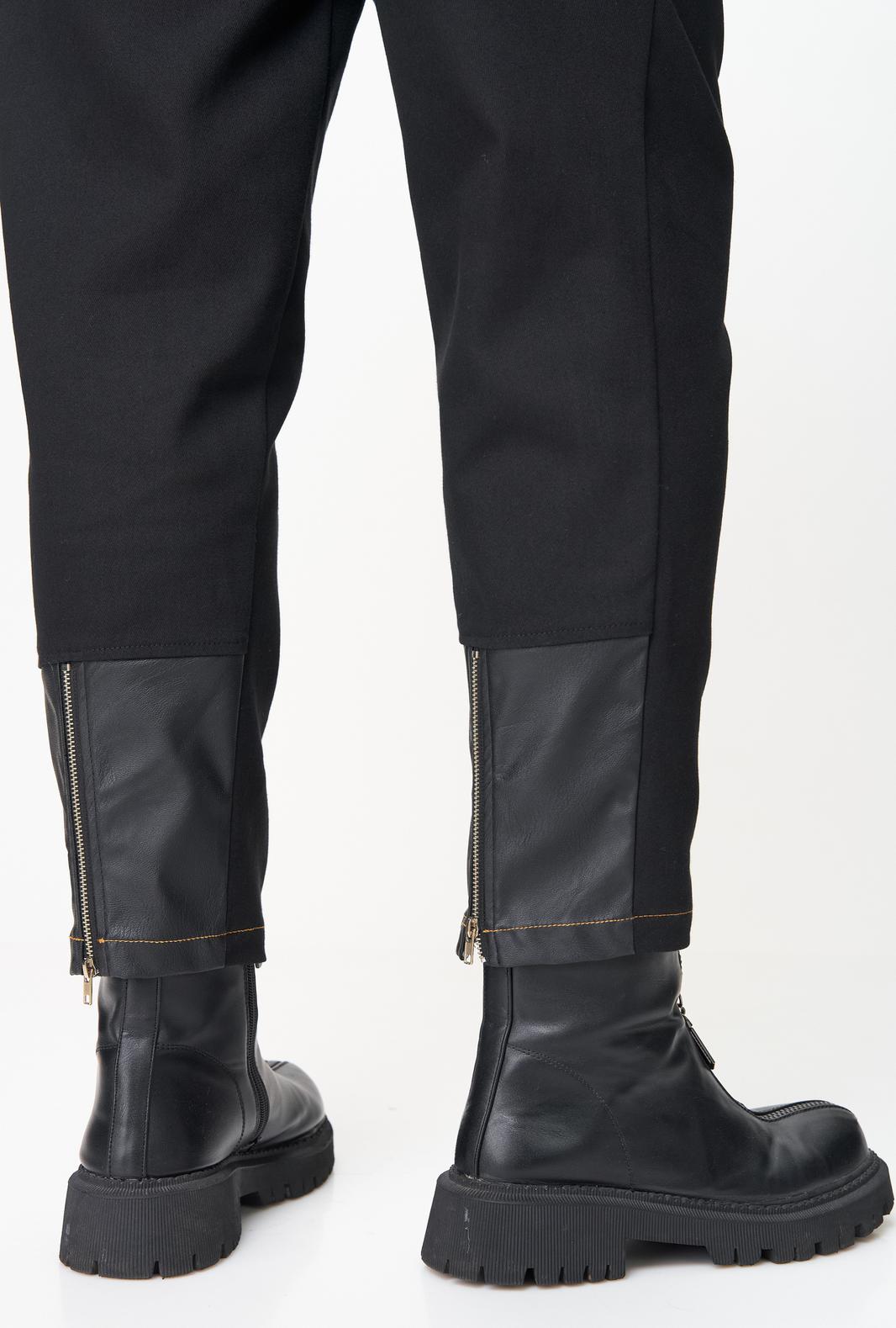 Джинсы мом с высокой посадкой - это идеальный выбор для женщин, ищущих комфорт и стиль в повседневной жизни, на работе. Брюки изготовлены из высококачественного смесового хлопка, обеспечивают идеальный баланс между удобством и прочностью. Модель с высокой посадкой, сзади с накладными карманами с отделкой и боковыми наклонными спереди. Вставки из экокожи с молниями по задним половинкам брюк внизу придают функциональности. Брюки на притачном поясе частично с резинкой.