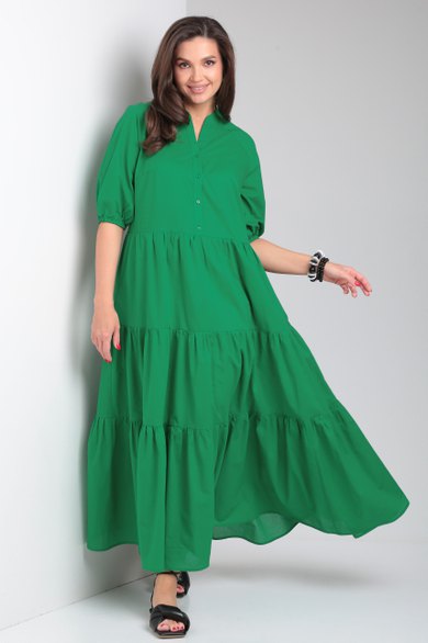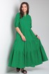 Изящное летнее платье, которое идеально подойдет как для повседневной носки, так и для романтических прогулок. Платье длины макси прямого силуэта покроя реглан. Лиф переда с застежкой на петли и пуговицы. В боковых швах обработаны карманы. Спинка цельная. Рукав короткий с эластичной тесьмой по низу. Низ платья состоит из трех воланов. Изделие без подкладки