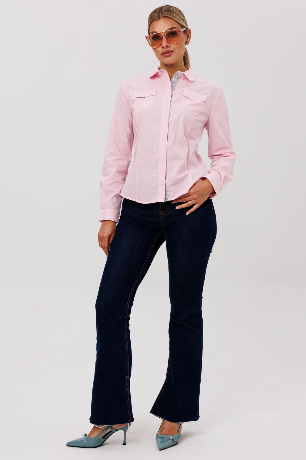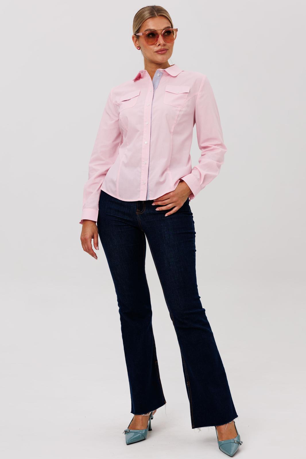 Классическая блуза полуприлегающего силуэта, создающая элегантный и утонченный силуэт. Модель сконструирована с талевыми вытачками по переду и спинке, что обеспечивает идеальную посадку по фигуре. Дополняют образ накладные карманы с аккуратными клапанами.