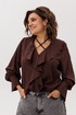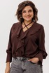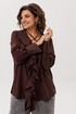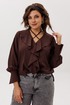 Глубокий V-образный вырез, украшенный воланами, подчеркивает изысканно-романтичный характер блузы. Эту историю дополняет игра завязок: их можно распустить для непринуждённой элегантности или завязать на шее, чтобы подчеркнуть трогательную женственность.