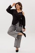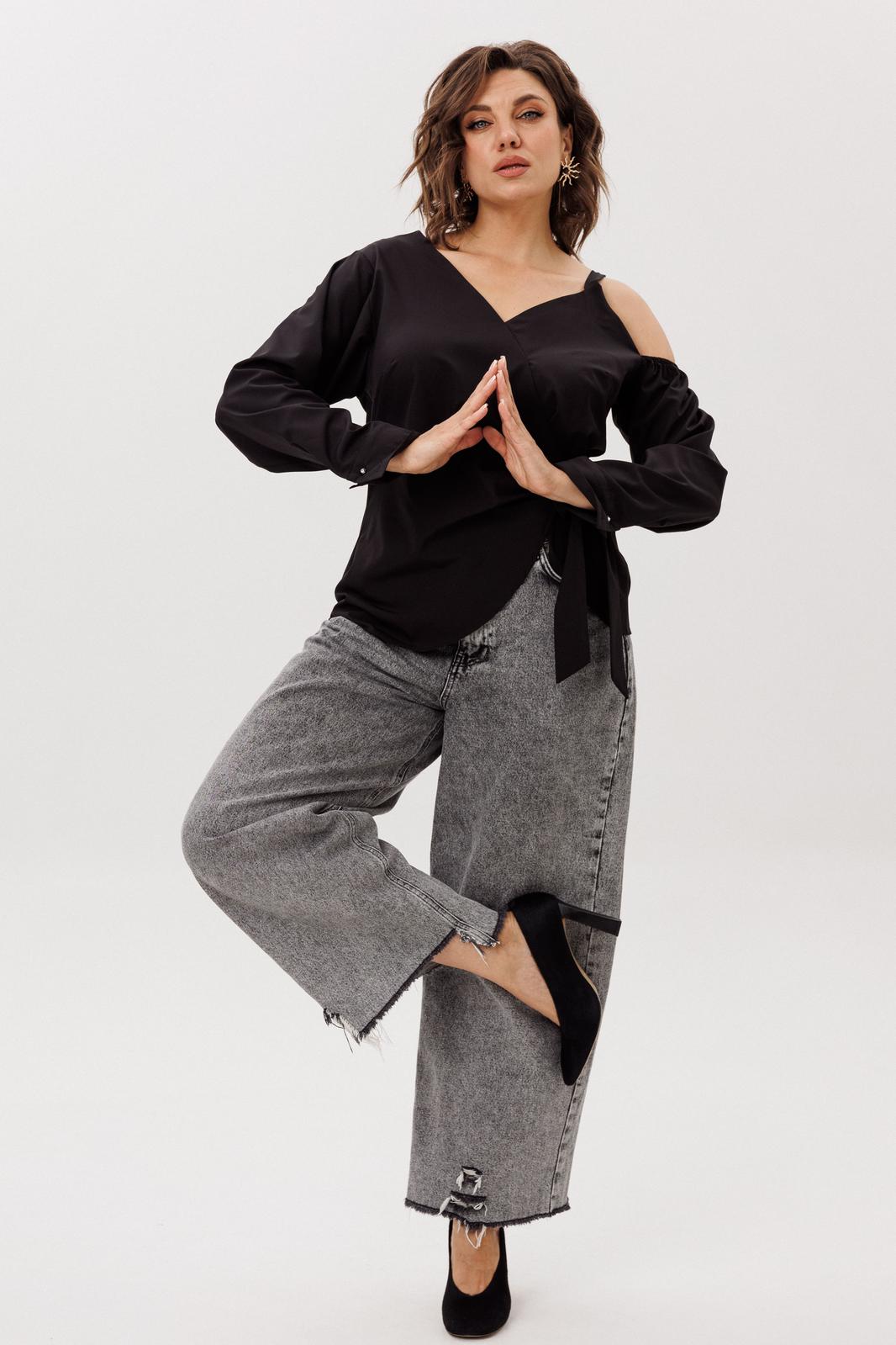 Кокетливая блуза, струящаяся мягкими складками, придает образу лёгкое дыхание романтики.