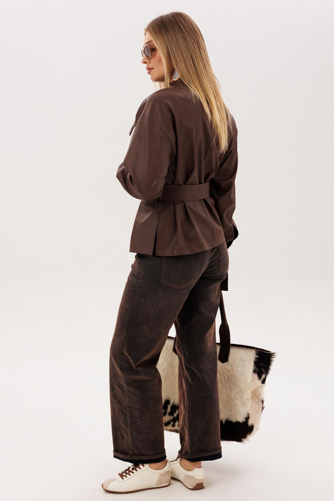 Пояс из той же эко кожи позволяет менять настроение образа - носить рубашку свободно или мягко подчеркнуть талию, создавая более женственный силуэт. Эта модель легко вписывается в гардероб, прекрасно сочетается с джинсами и каблуками, создавая образ, в котором комфорт соединяется с выразительностью. Рубашка, в которой чувствуется уверенность, стиль и особое настроение.