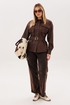 Рубашка от Анелли «чокалэйт скин» - это баланс уверенности, мягкости и современной женственности. Свободный крой создаёт ощущение лёгкости и комфорта, позволяя двигаться свободно и непринуждённо, а отложной воротник на стойке добавляет образу аккуратную, собранную элегантность. Мягкая эко кожа красиво держит форму, придаёт образу характер, оставаясь при этом практичной для повседневной жизни.
