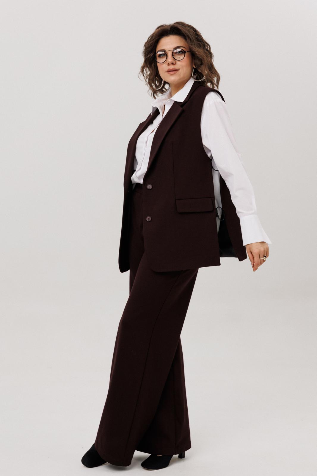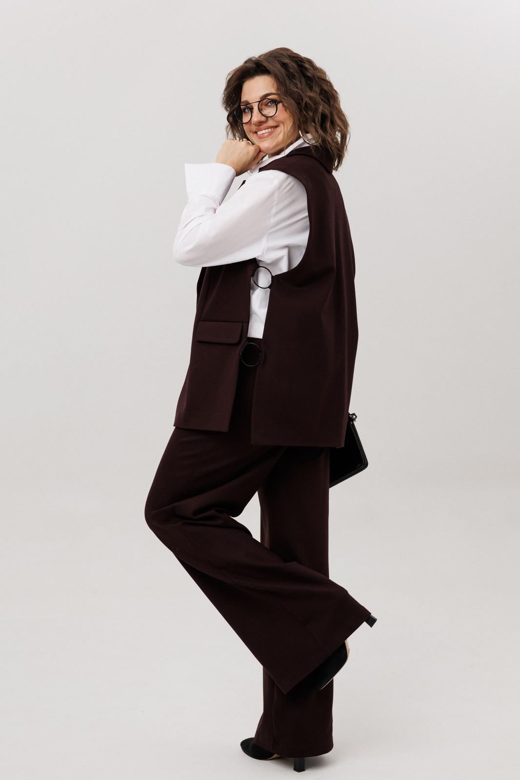 На модели в брюках цвета «лапсанг сушонг» рубашка 1203.1, блуза 1779.1 и шикарный жилет 1675.