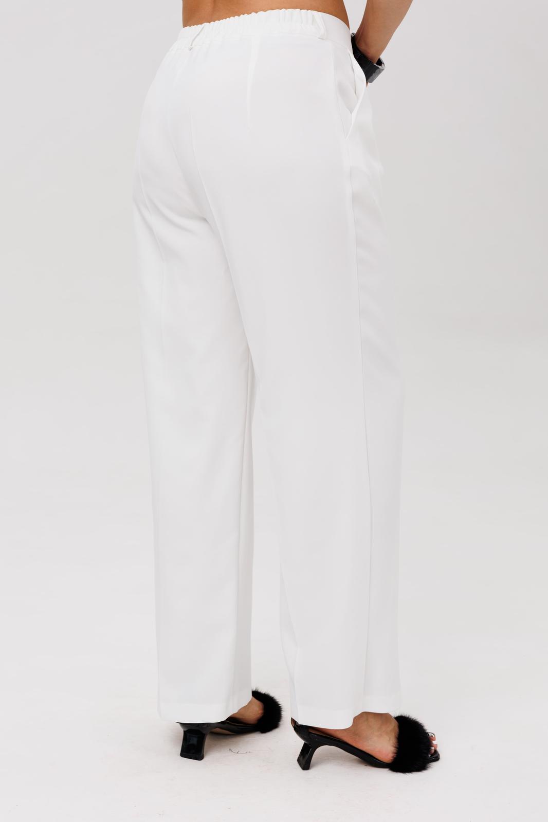 Плавное сужение к низу гармонично балансирует с объёмом в бёдрах, а эластичная вставка на поясе обеспечивает идеальную посадку с комфортом. Удобная застёжка и продуманное расположение швов создают безупречную линию, а свободный крой в области икр гарантирует, что брюки будут идеально сидеть, не обтягивая и не сковывая движений.