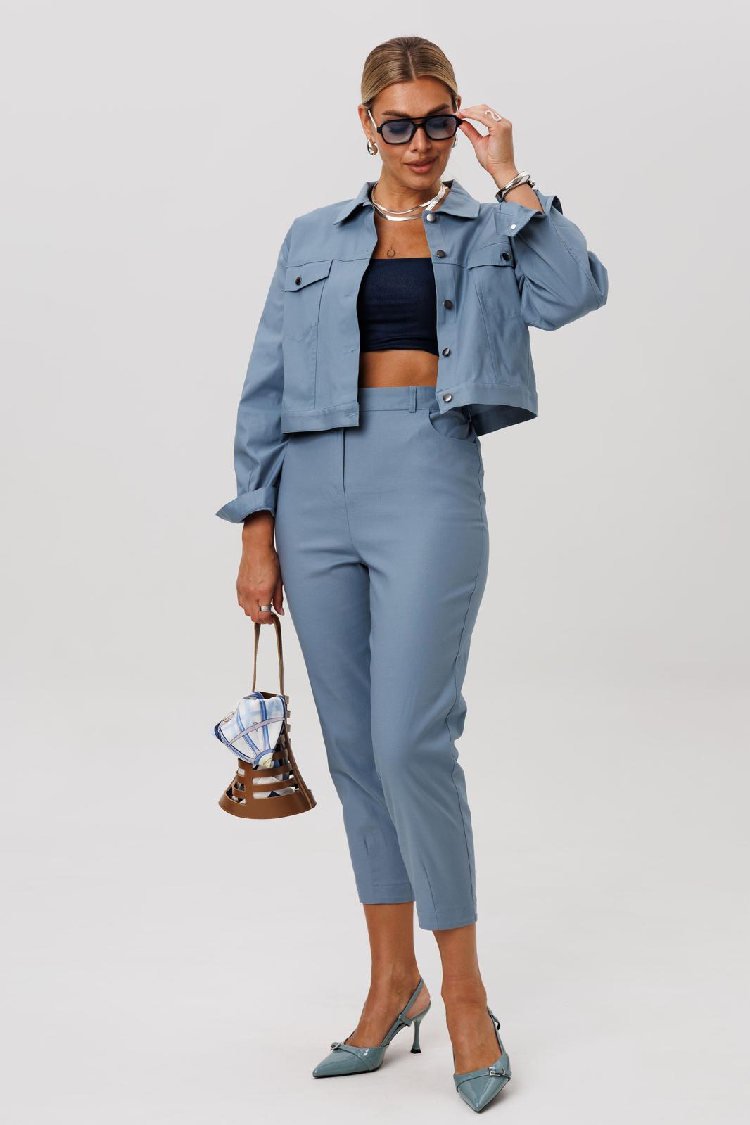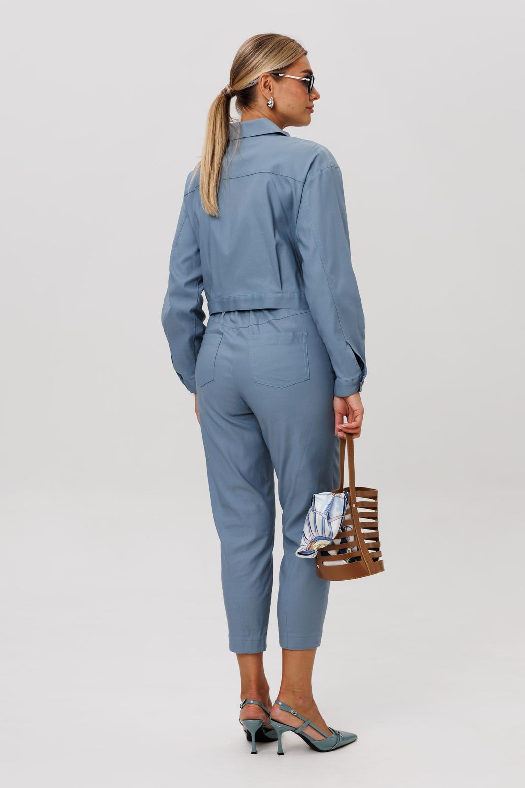 Брюки от Анелли в цвете «горная роса» с высокой посадкой и длиной до середины щиколотки мягко заужаются к низу, создавая современный и выигрышный силуэт. Спереди расположены карманы, а застёжка-гульфик на молнии и пояс с кнопкой обеспечивают удобство. Спинка оформлена фигурной кокеткой и настрочными карманами. Резинка на поясе по спинке гарантирует идеальную посадку.