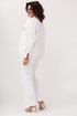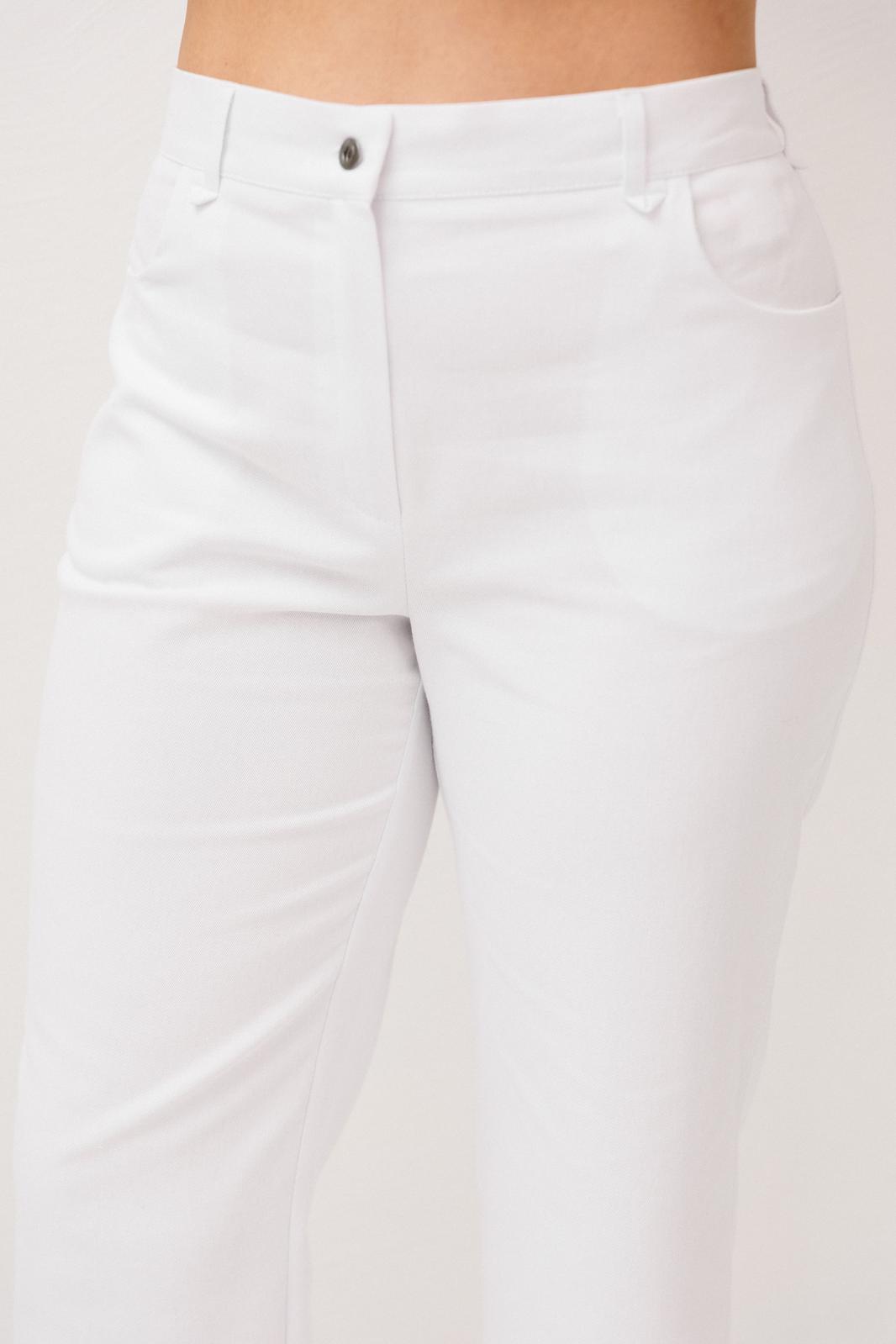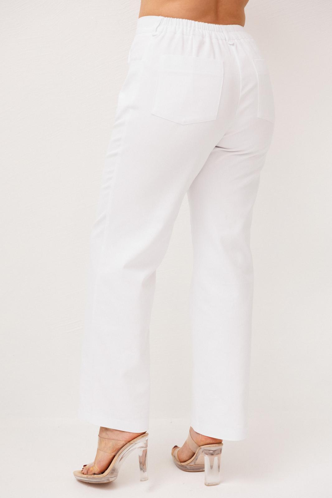 Прямой крой и высокая посадка красиво подчеркивают силуэт и обеспечивают безупречную посадку по фигуре. Застёжка на молнию, петлю и пуговицу аккуратно фиксирует изделие по линии талии, а пояс по спинке добавляет удобства и мягко адаптируется к фигуре.