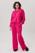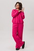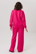 Брюки продолжают философию комфорта, предлагая прямую посадку на эластичном поясе, который мягко сидит по фигуре, не стесняя движений. Лаконичный дизайн дополнен практичными боковыми карманами. Подлинной изюминкой всего комплекта становятся намеренно открытые срезы, привносящие в образ ноту дерзкого шика.