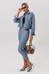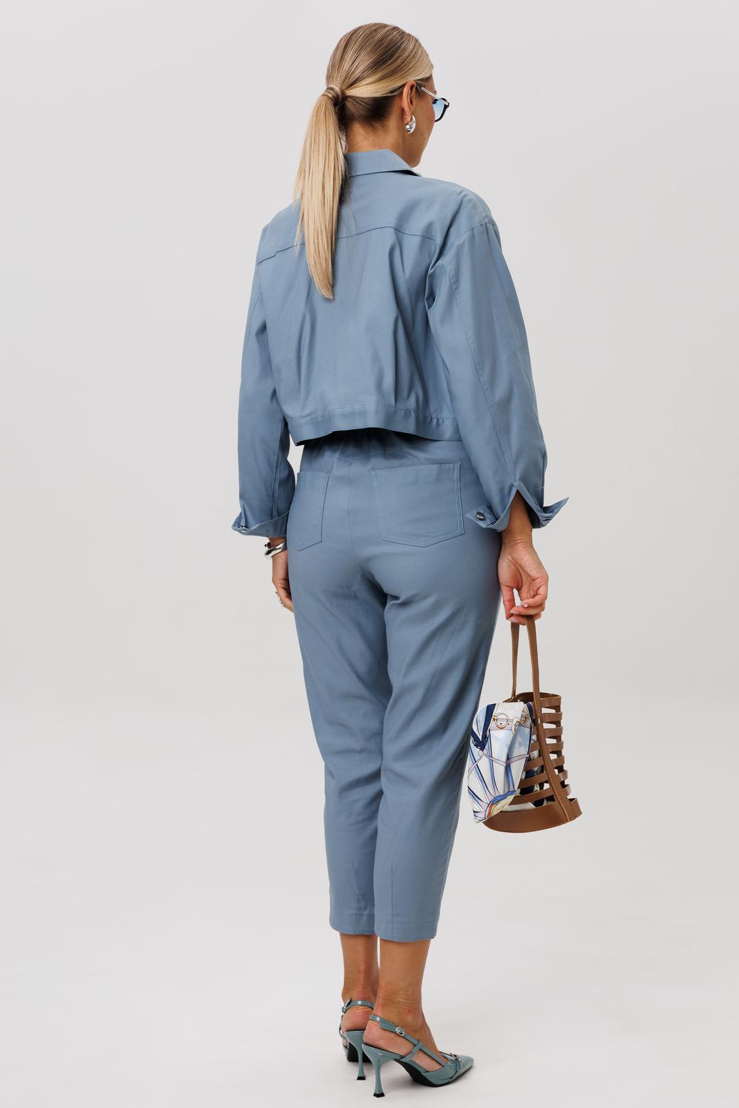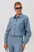 Джут укороченный, прямого кроя. Переднюю часть украшают нагрудные карманы с декоративными клапанами. Застёжка на петли и кнопки добавляет модели характер, а спинку завершает изящная кокетка. Длинные рукава заканчиваются манжетами, а горловина обработана аккуратным воротником.