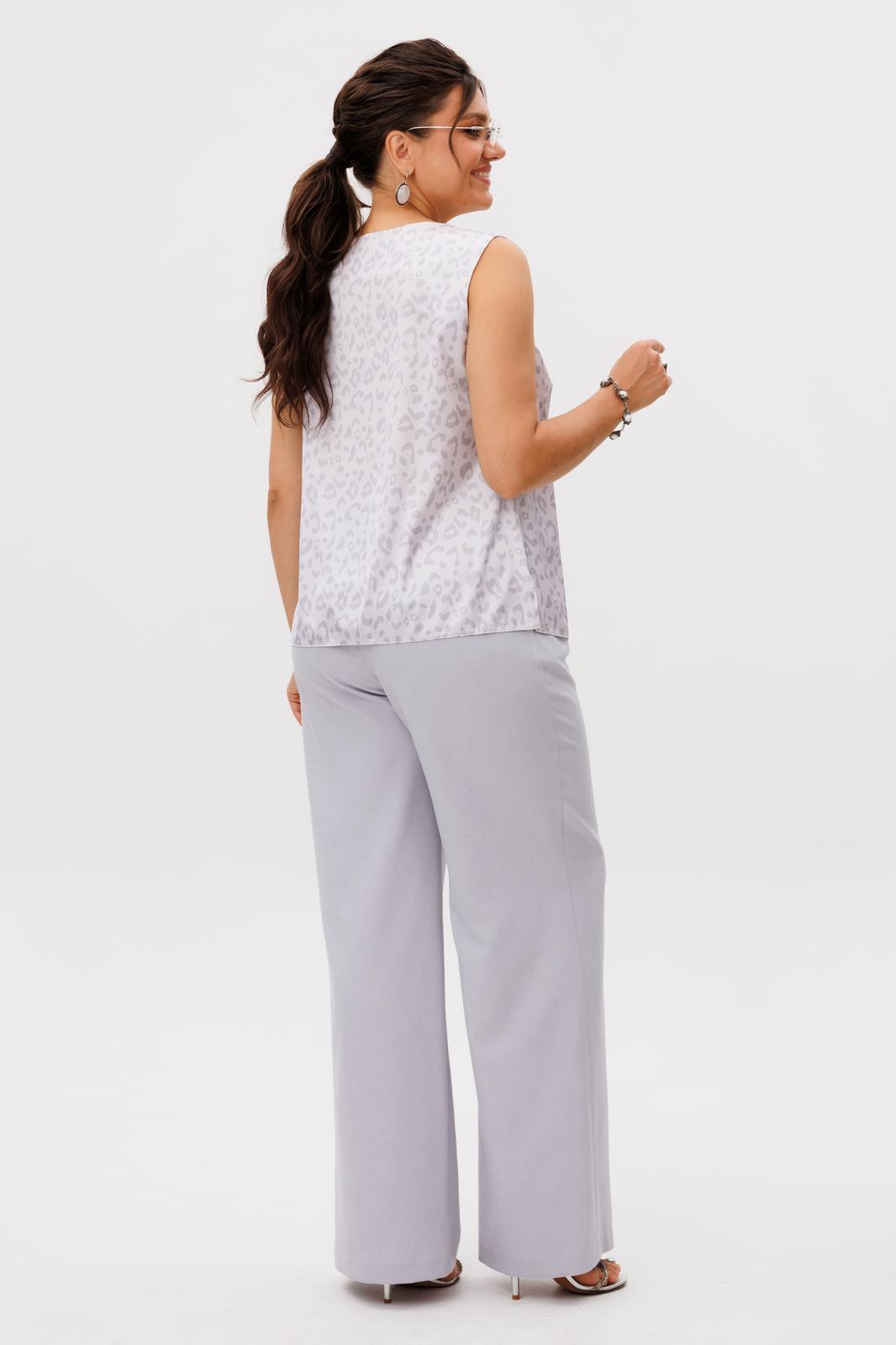 Завершает ансамбль лаконичный топ с круглым вырезом и деликатными разрезами по бокам - та самая база, которая делает трио совершенным.