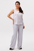 Прямые брюки с высокой посадкой идеально балансируют объем верха: они сидят безупречно благодаря комфортной резинке на поясе сзади и классической застежке спереди, а практичные карманы подчеркивают их повседневный характер.