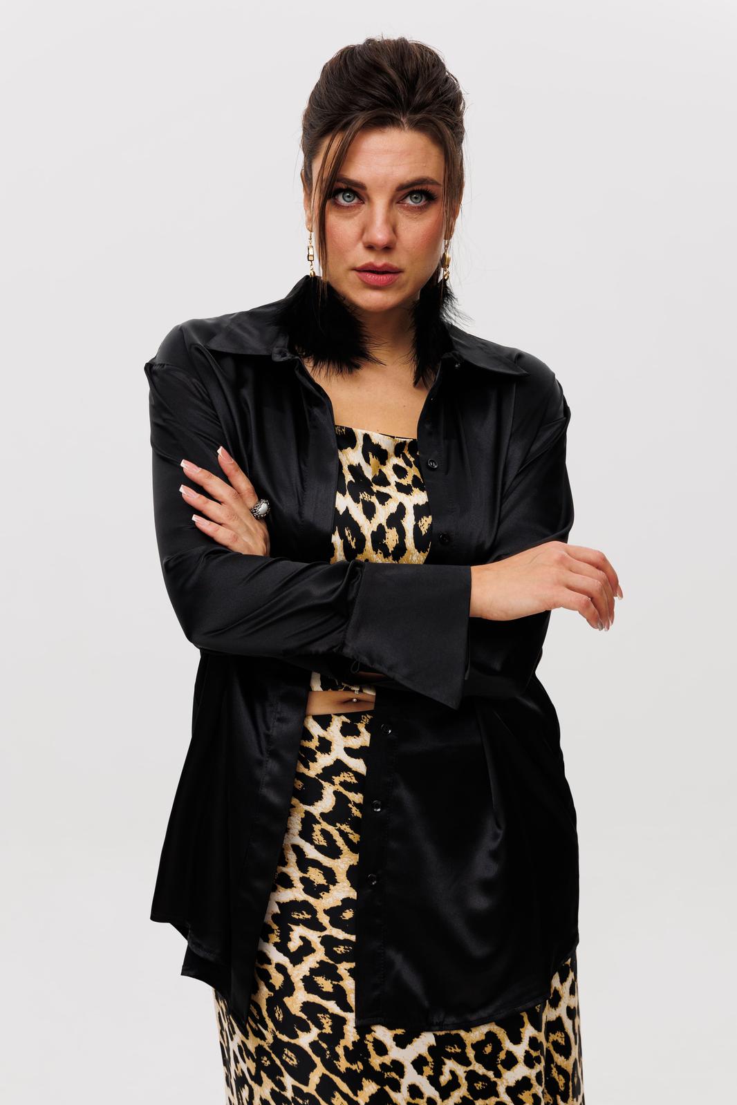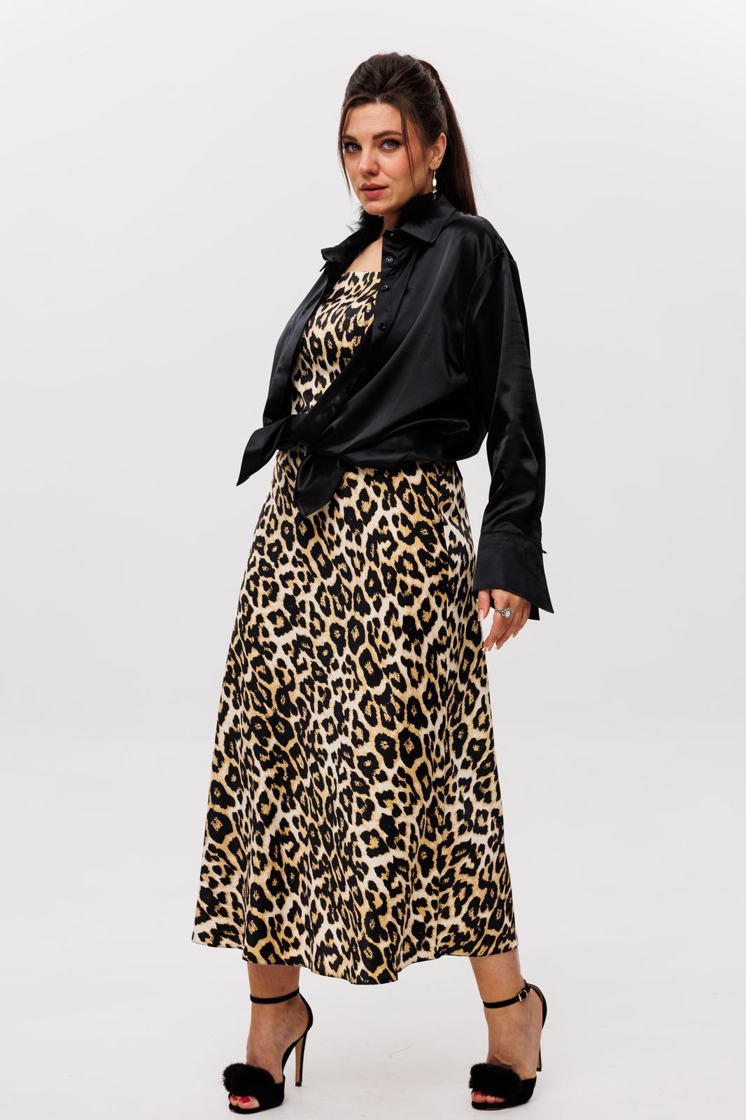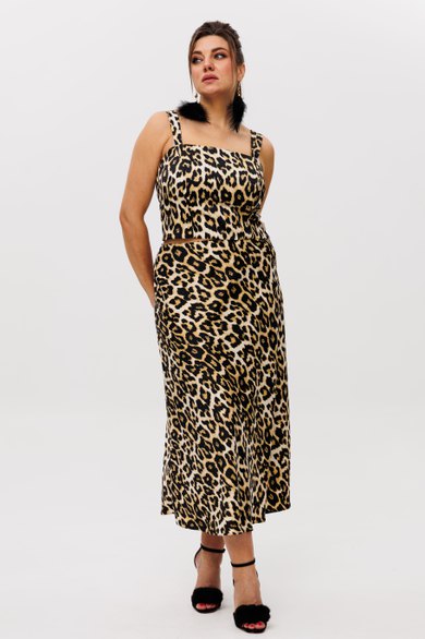 Элегантный костюм из атласа с энимал принтом, состоящий из топа и шикарной юбки от Анелли ваш лучший выбор!