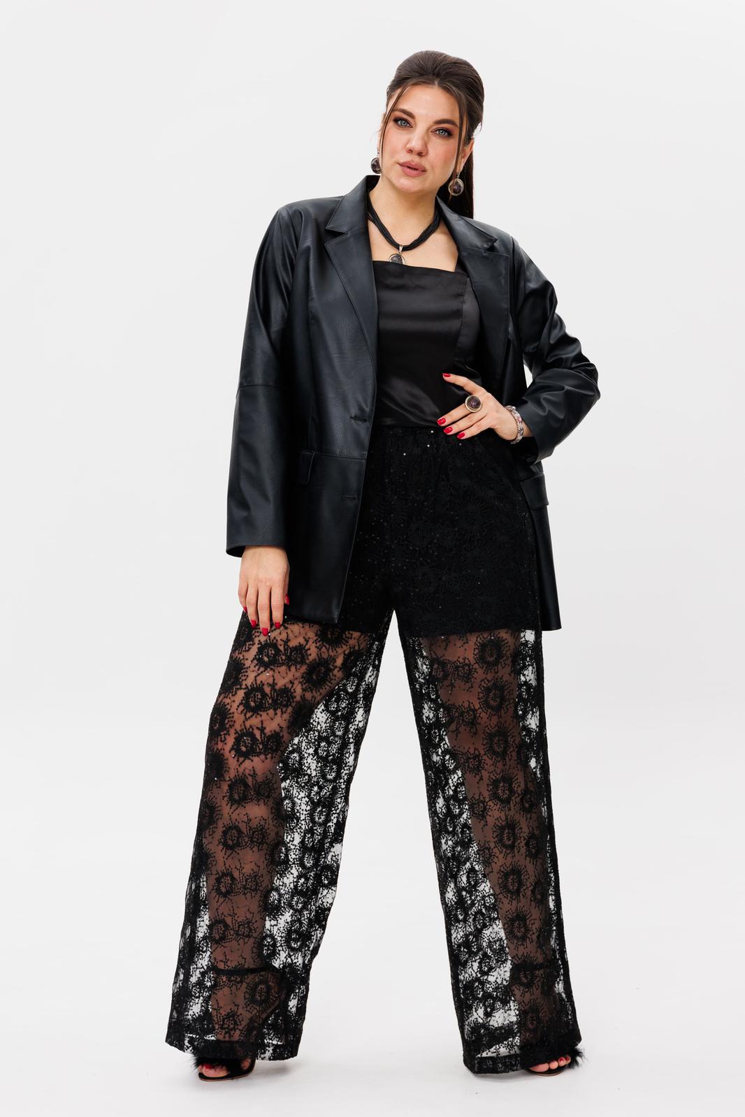 На модели созданы образы с юбкой 1291, топом 1429, брюками 1517, блузоном из пайеток 1522 и жакетом 1470.