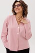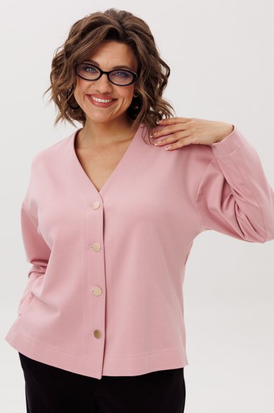 Его прямой силуэт со спущенным плечом и изящными разрезами по бокам струится легко и свободно, подчеркивая достоинства, не сковывая движений. Глубокий V-образный вырез горловины добавляет образу женственности и строгой элегантности, а классическая застежка на красивые пуговицы завершает безупречный вид.